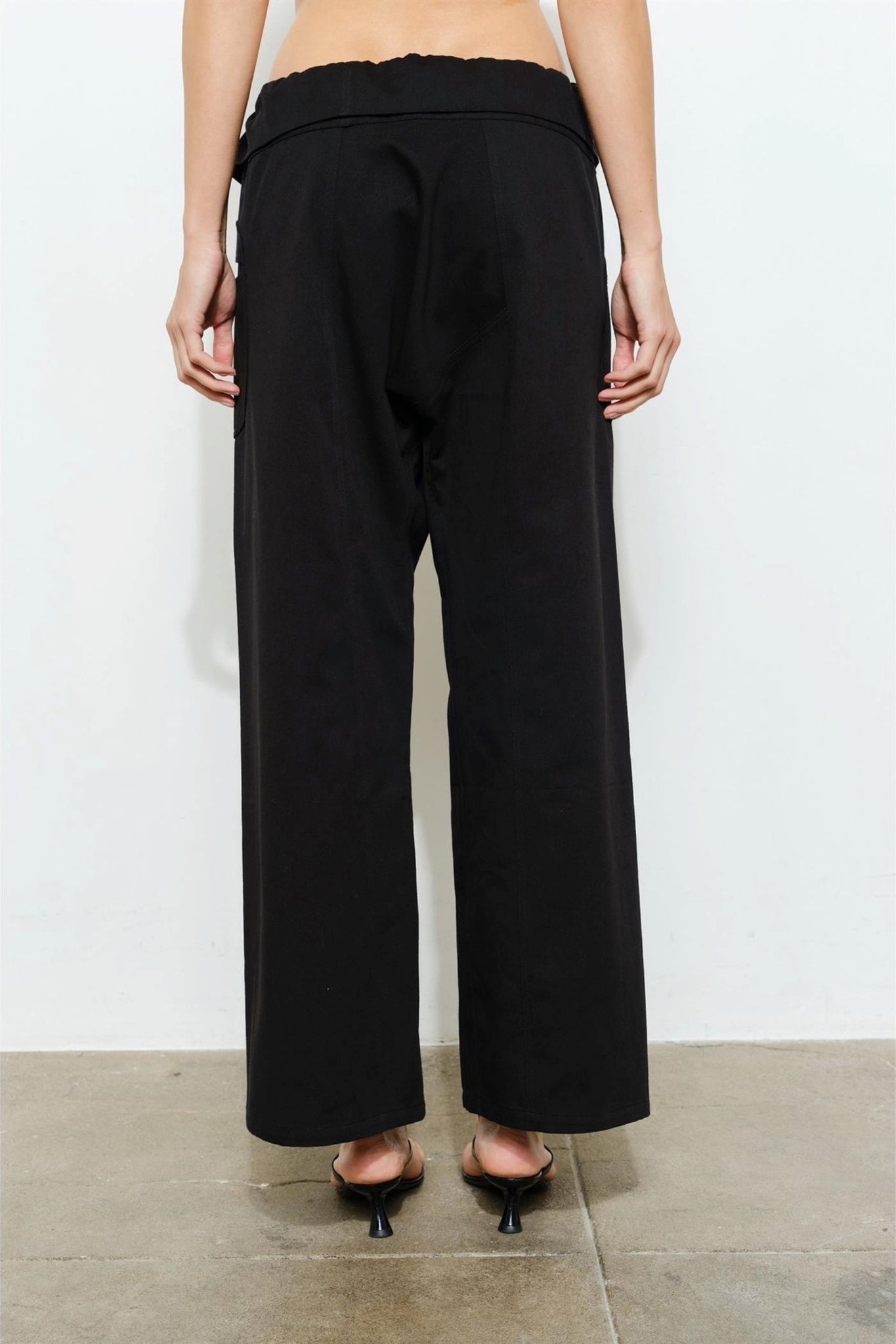 The Anja pant combines comfort with effortless style, featuring a unique fold-over waistband. Designed with a relaxed wide-leg silhouette and functional drawstring, these trousers are completed with deep front patch pockets for a utilitarian touch.