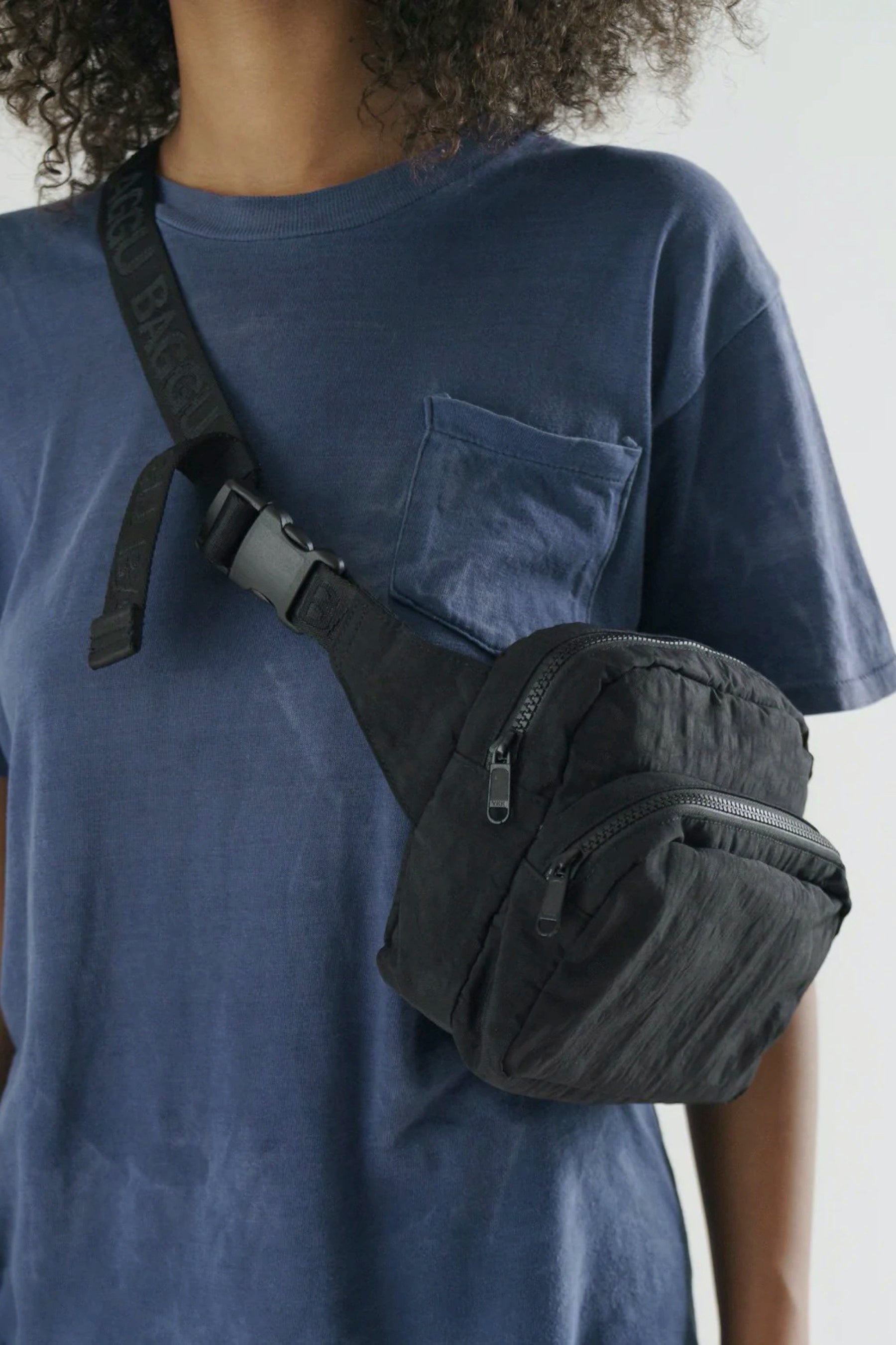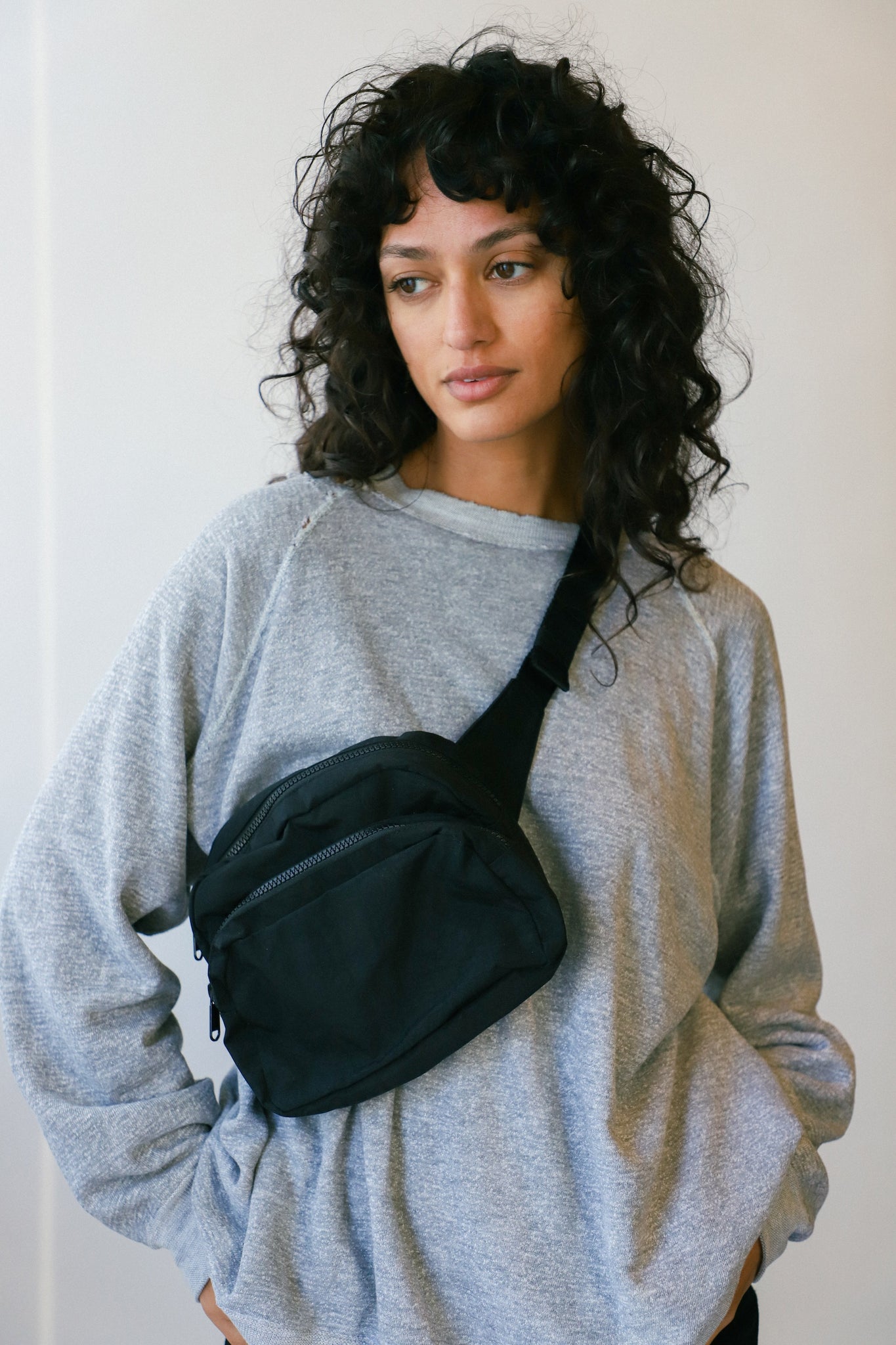 A hands-free bag to wear across the body, over the shoulder or around the waist. Adjustable tonal logo strap with buckle closure. Durable, heavyweight nylon exterior with ripstop lining for easy cleaning.