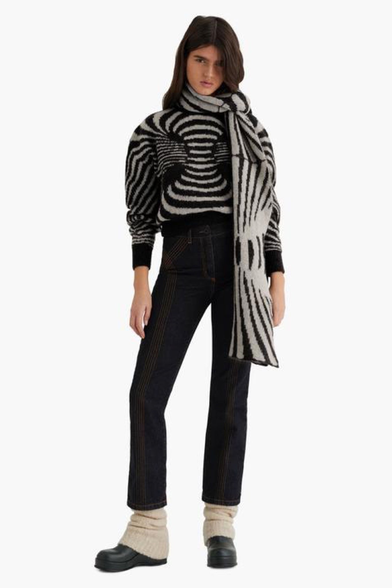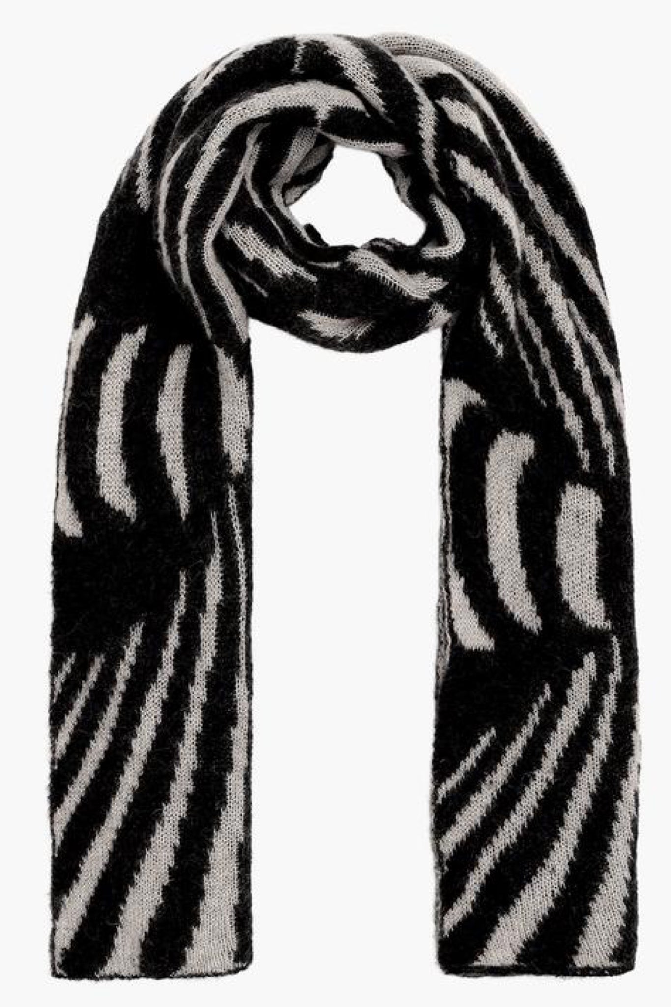 Warm and fuzzy infinite Op-art design scarf.