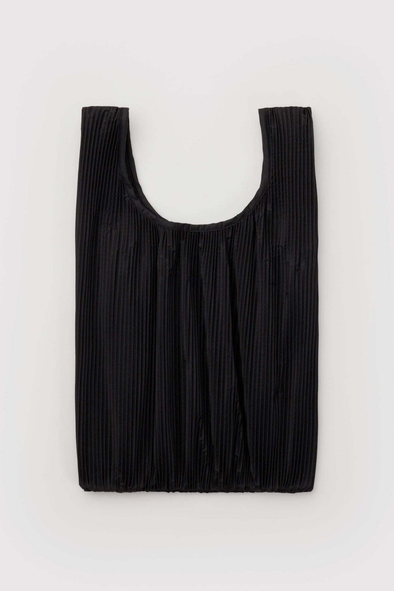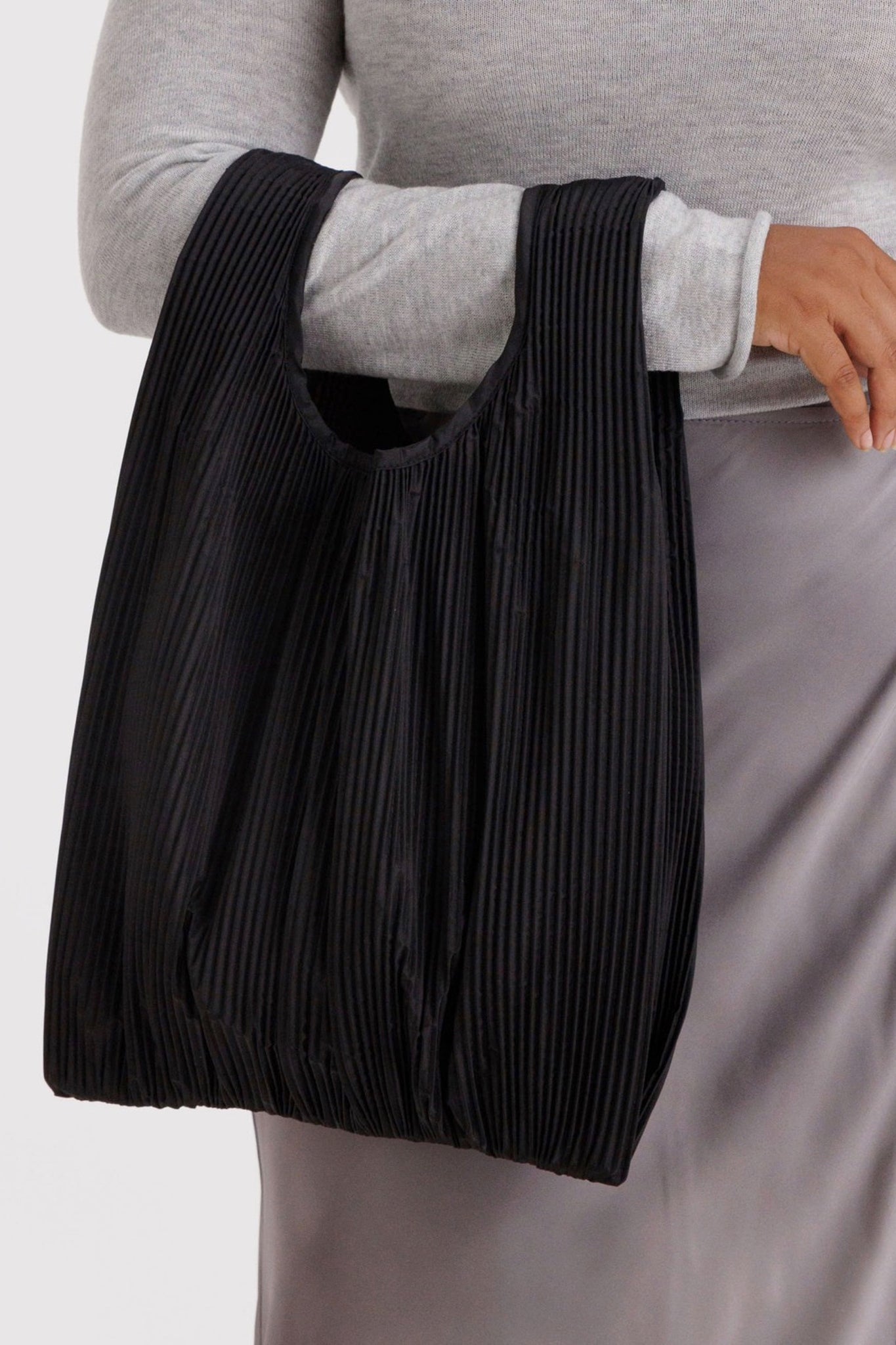 A special, pleated version of the classic Baggu shape that can be worn as a dressier, fashion forward catch-all bag. Hold 30 lbs.