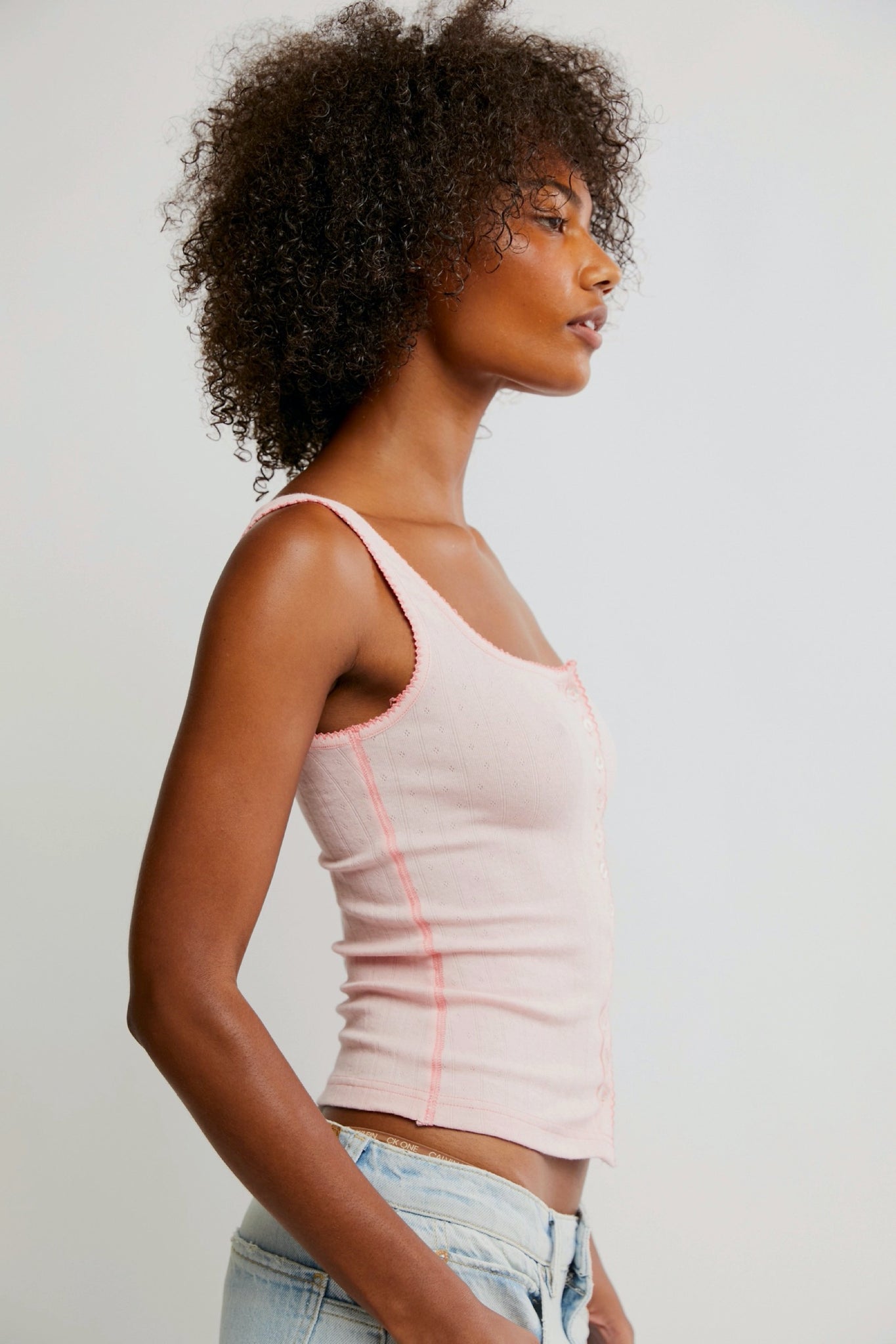 The perfect timeless tank, this sweet staple is featured in a soft cotton fabrication and button-front style with a wide square neckline and pointelle detail.