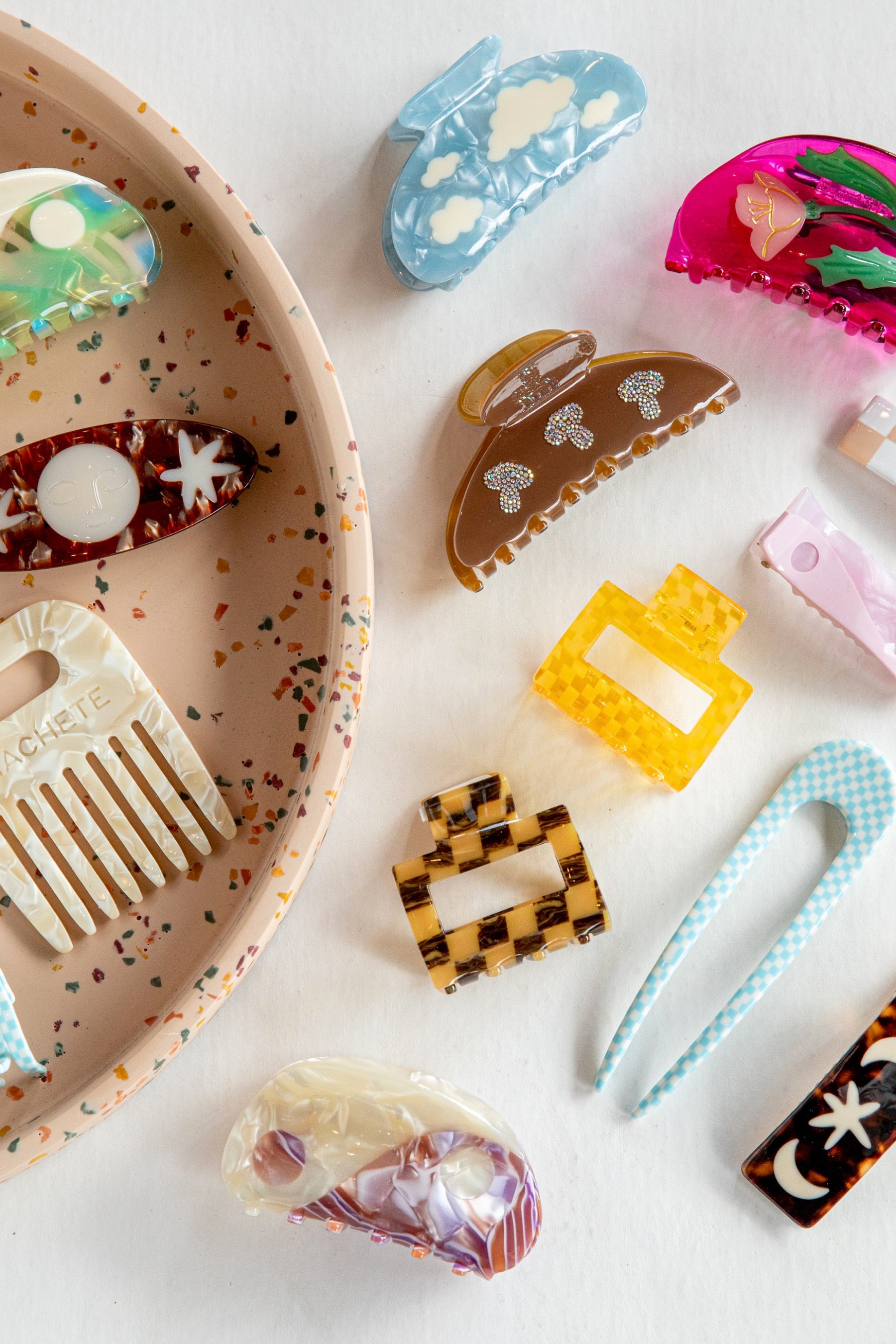 The secret to everyday stylish hair is our easy-to-style French Hair Pin. Hand-sculpted in Fine Italian Acetate, made specifically to hold your hair tight with no excess creasing or effort.