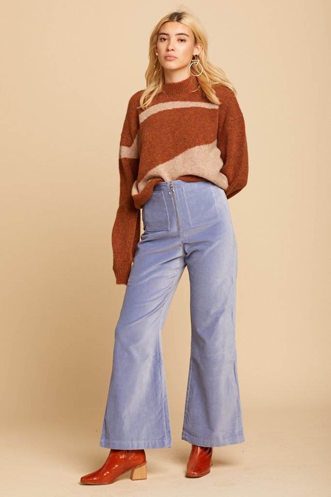 These pants are a MUST HAVE. High waisted velvet pants features a zip closure, flattering fit with a wide leg.