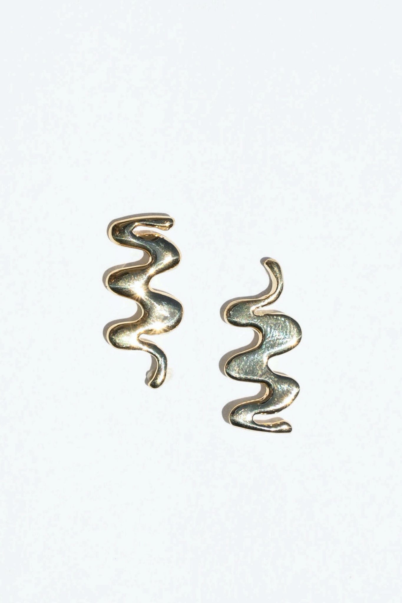 These earrings are inspired by the whimsical zig zag shape of kombu seaweed leaves. Hand carved and cast with a high polished finish.