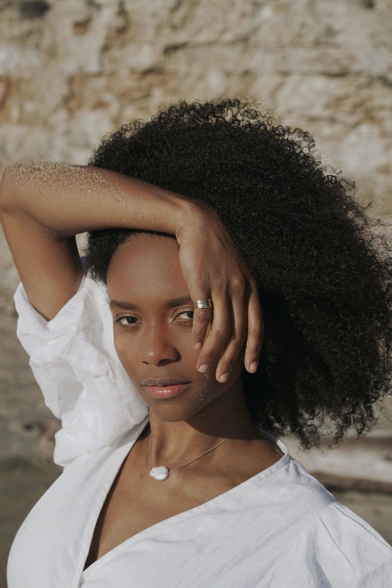 A note on Bronze jewelry: The high copper content in bronze can cause it to darken over time. This is primarily due to a reaction to water and humidity. Some people, depending on their personal PH balance, experience a green coloring to the skin when it comes in contact with bronze and brass. This is perfectly harmless and is due to the copper content. If you prefer to avoid the dark patina to the metal, try to keep your bronze and brass as dry as possible. Take your ring off when washing your hands and dry your hands thoroughly before putting your ring back on. You can also coat the inside of the ring with a clear nail polish this will form a barrier between your skin and the ring. If tarnish begins to occur, a Jewelry Cleaning Cloth can be used for touch ups. For a bright shine, it is easiest to use a commercial polish like Brasso to restore your piece to its original luster.