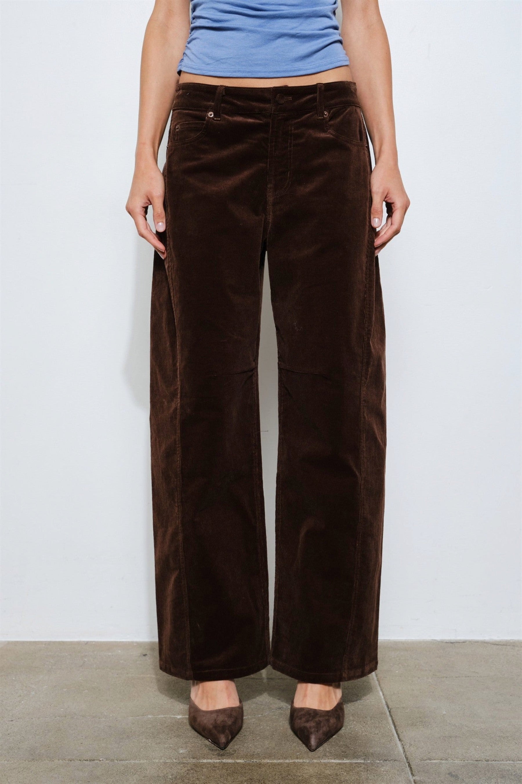 The Cosette pant offers a perfectly retro silhouette crafted from plush corduroy. Featuring a classic five-pocket design and a low-rise waist, this pair falls into a flattering barrel leg. A subtle front seam detail elongates the leg for a flattering effortless look.