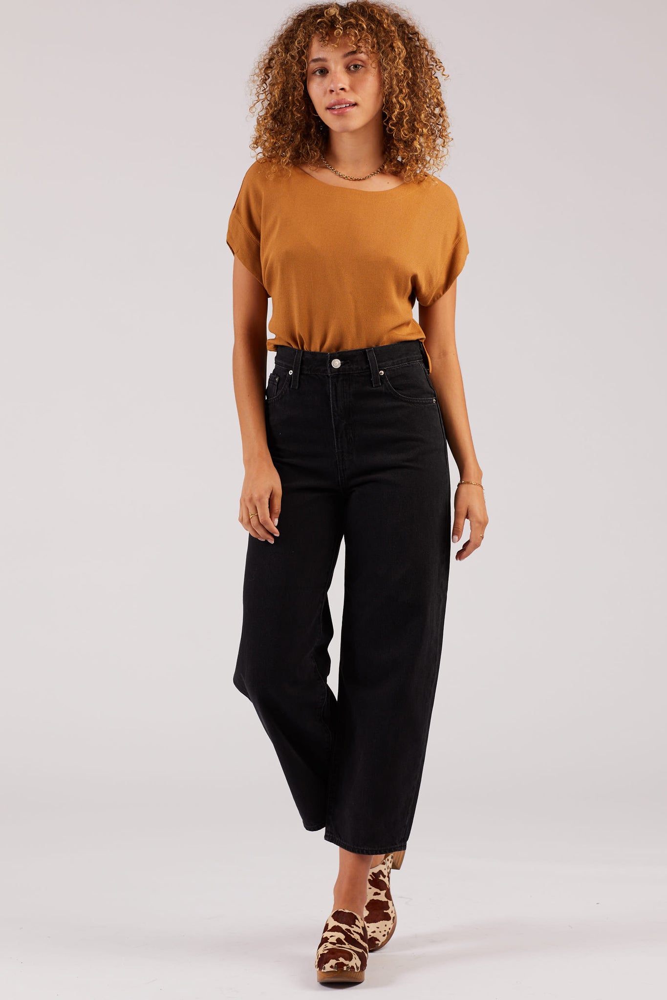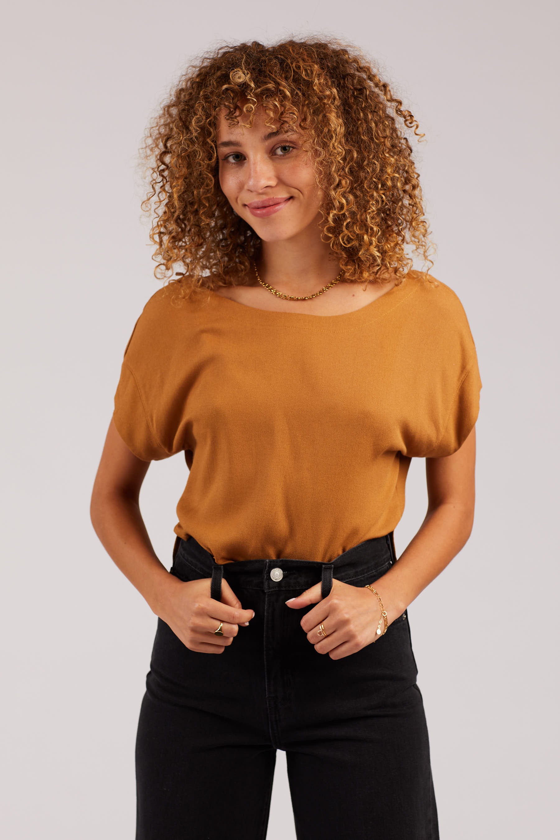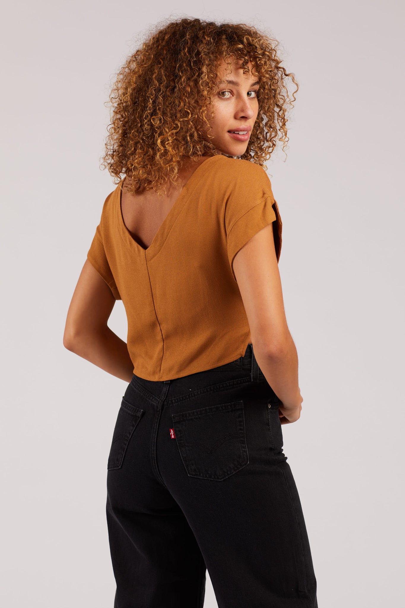 A relaxed, boxy top featuring dropped shoulders and v-shape back in a relaxed fit. Cropped perfectly to sit just right above the hips, throw this one on with your best mini and head for the beach.