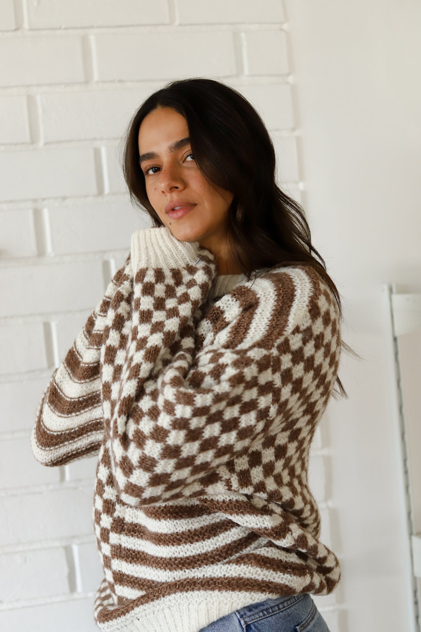 Mocha Mixed Checker Sweater