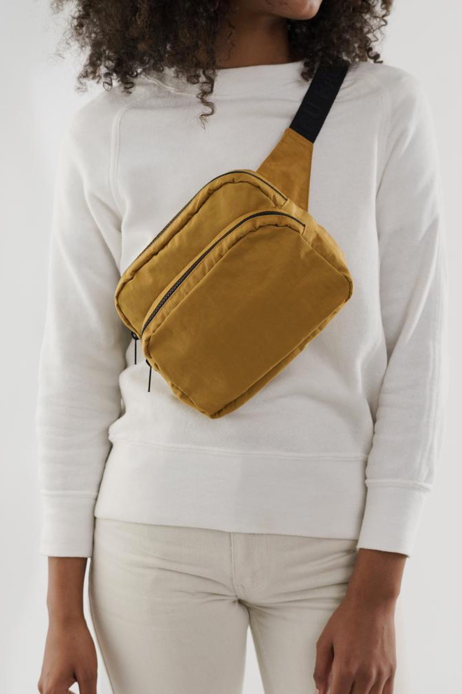 A hands-free bag to wear across the body, over the shoulder or around the waist. Adjustable tonal logo strap with buckle closure. Durable, heavyweight nylon exterior with ripstop lining for easy cleaning.