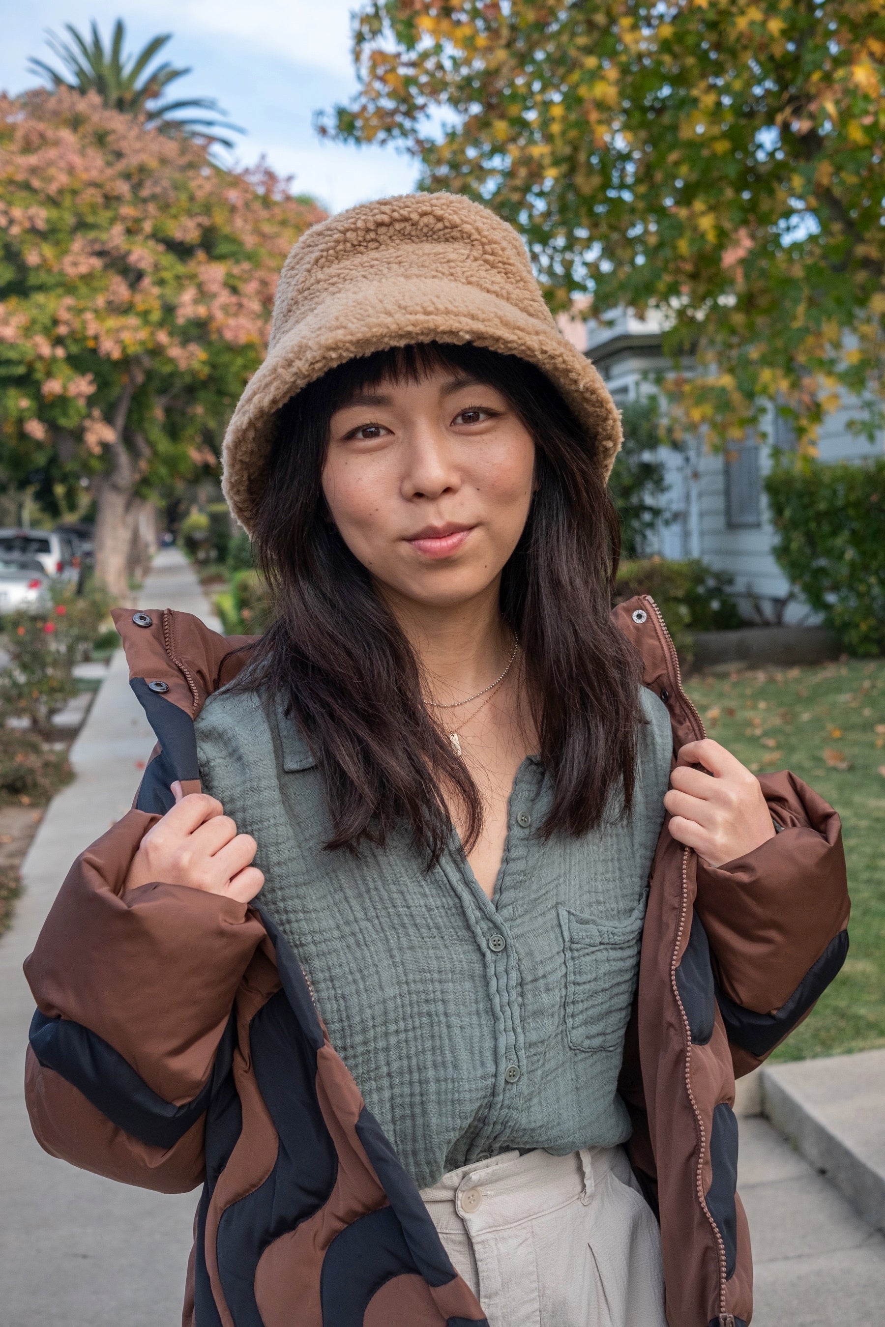 Get cozy in the new shearling teddy bucket by LOC. Brimmed bucket hat design.