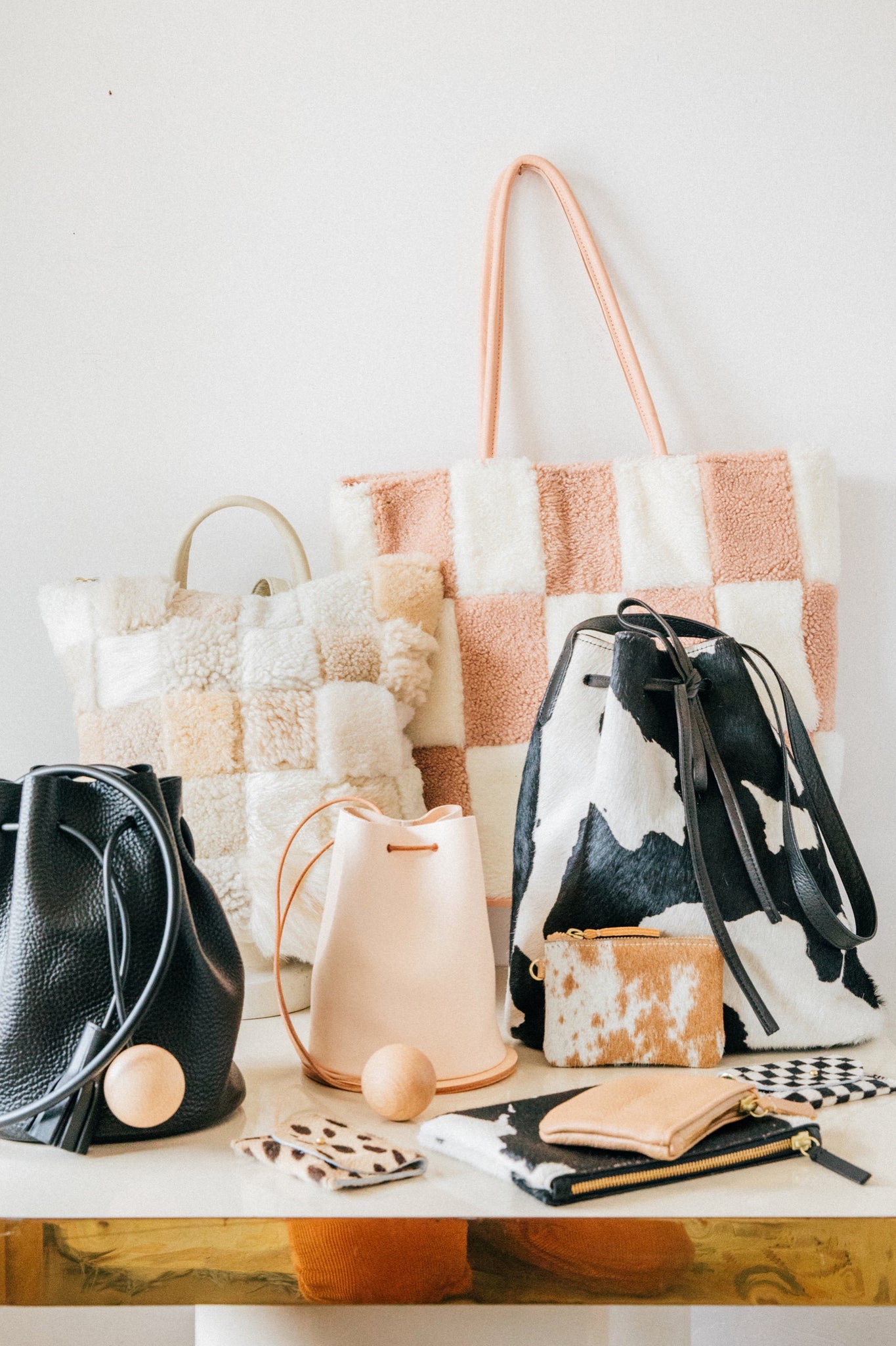Primecut bags are handcrafted in Portland, Oregon where each bag is carefully constructed, taking into account the unique properties of the materials used. Their process begins with carefully sourcing cowhides and shearling from tanneries throughout the world. Each piece of material is selected based on its quality, weight, and durability. Their bags reflect their playful design aesthetic. Slight variations in pattern, color, and texture represent the uniqueness in each Primecut piece.