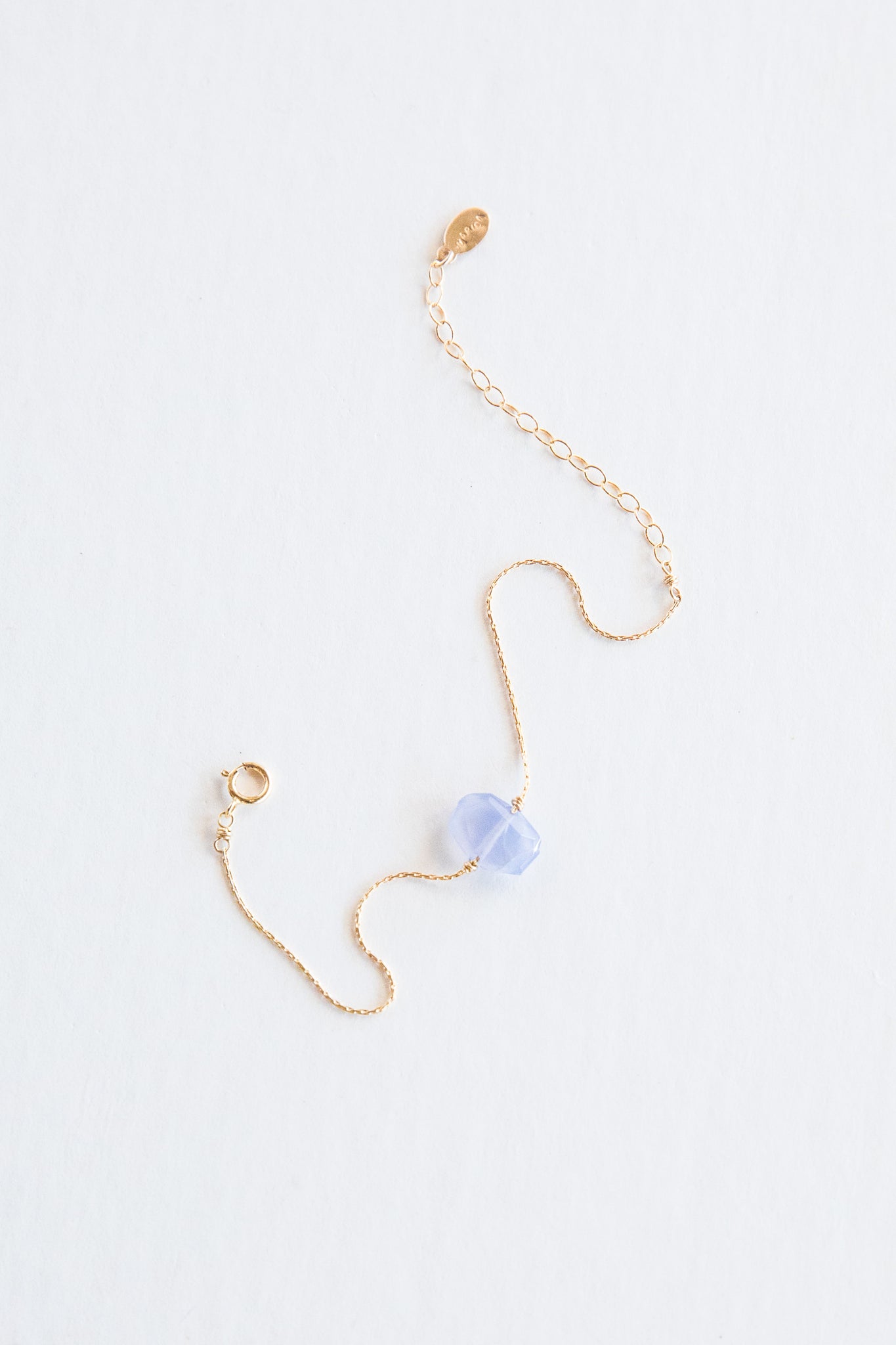 Chalcedony gemstone on a simple gold snake chain. Handmade in Long Beach, CA.