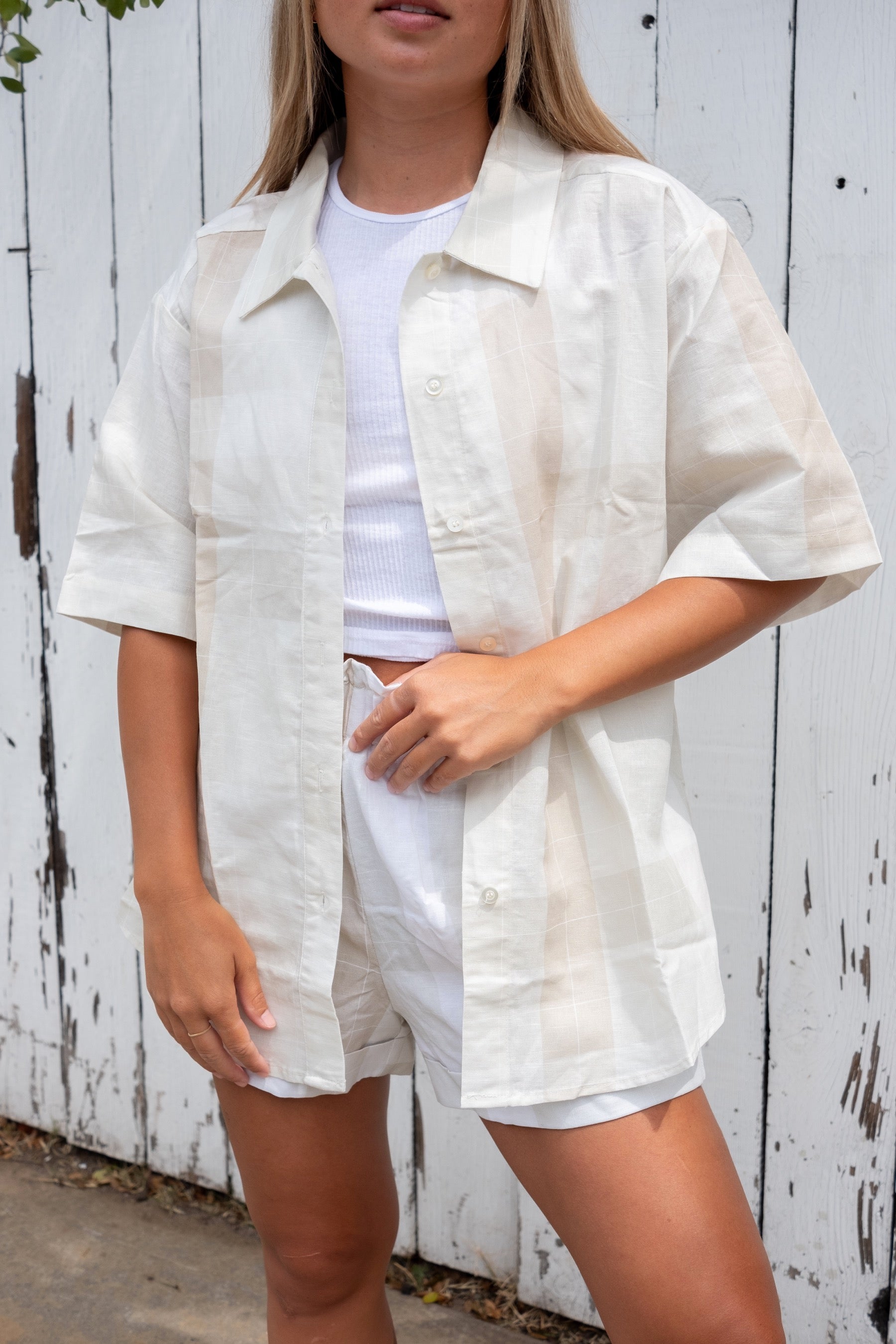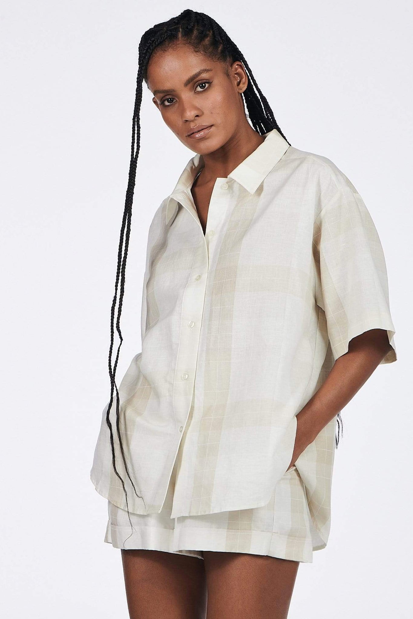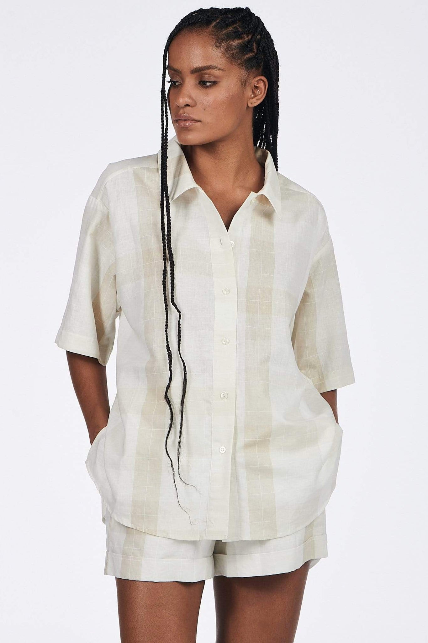 In a timeless check fabric, this easy shirt will work with everything in your wardrobe. Wear as a set with the matching Check Cape Shorts or pair with your favorite pair of jeans.
