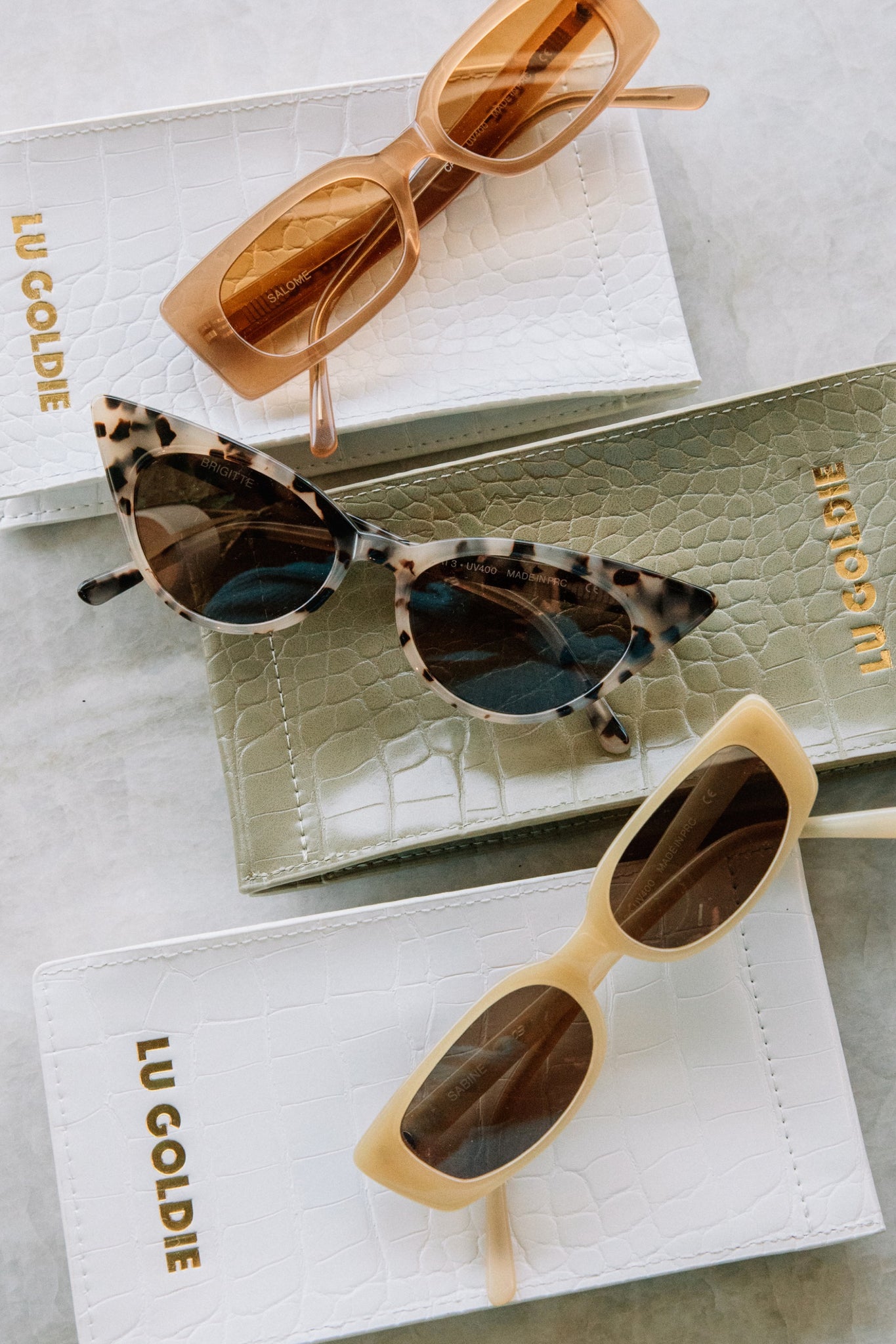 With inspiration ranging from chic 60’s mod to laid-back 90’s sass and everything in between, Lu Goldies's glossy statement styles feature dreamy colors, unique face-framing shapes, and vibes for days. They're high quality without being pretentious, because they think style should run wild, and never be taken too seriously.
