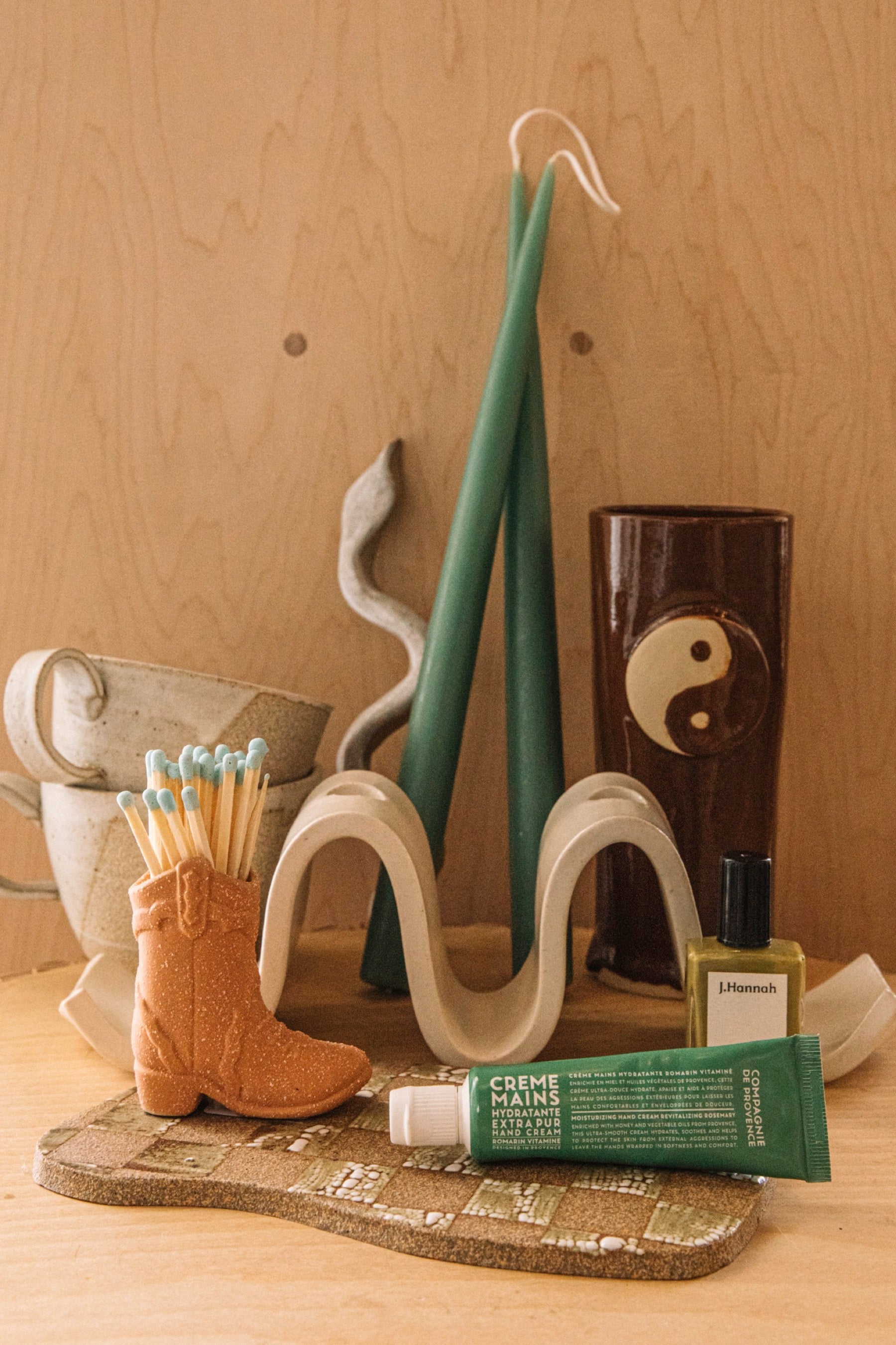 Handmade vase with an eye catching yin yang design and exposed raw clay base that perfectly contrasts the glossy brown glaze. Made in Long Beach, CA.