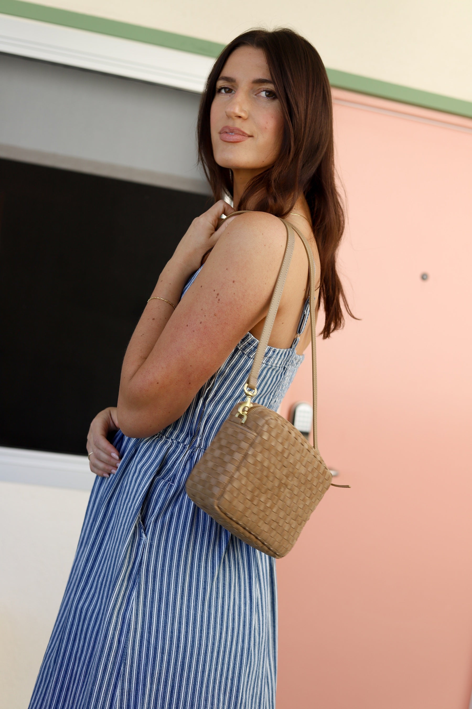 Clay Woven Suede Checker Midi Sac