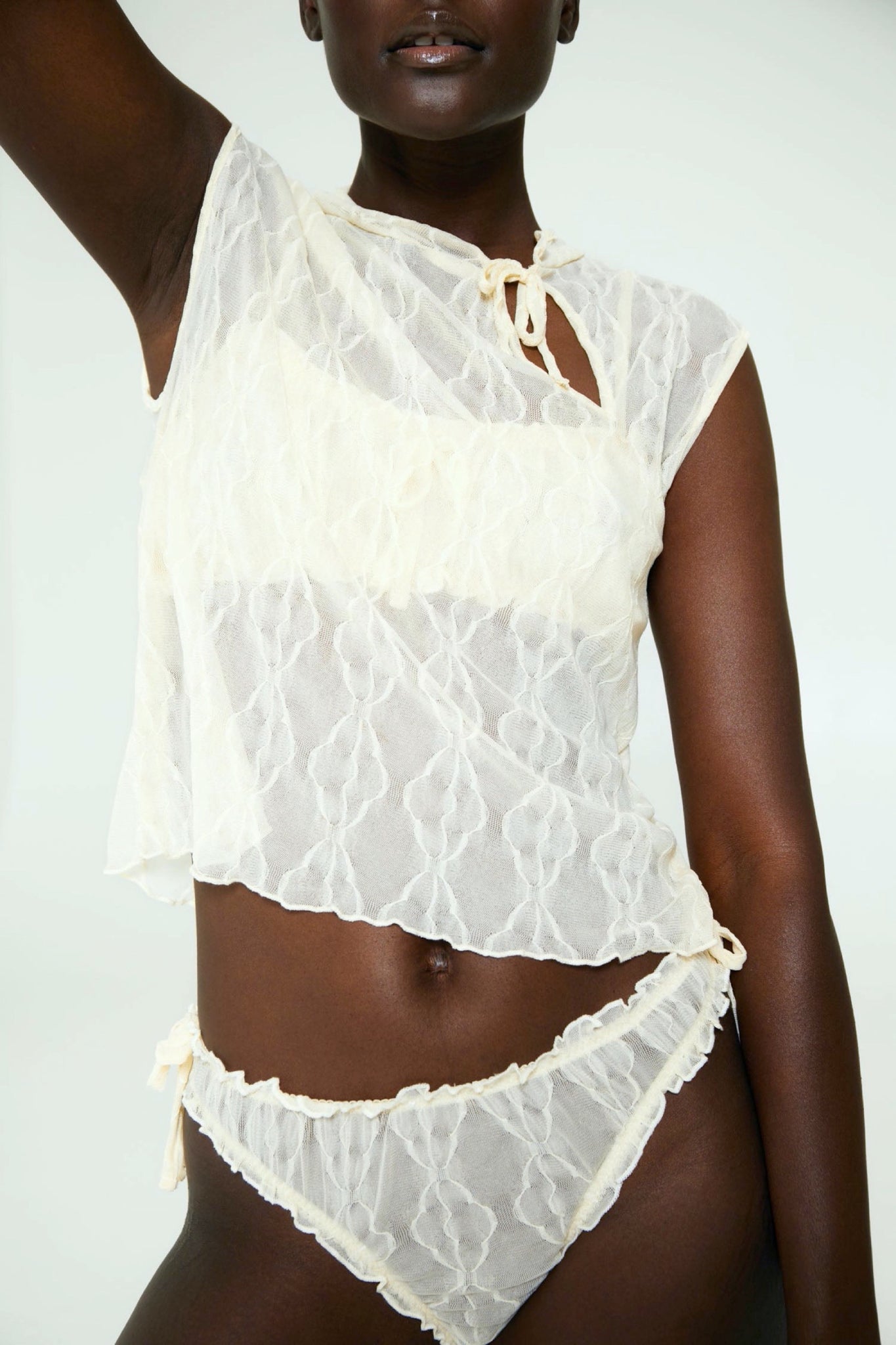 This romantic top showcases the popular sheer Mariposa lace with a pretty keyhole style.