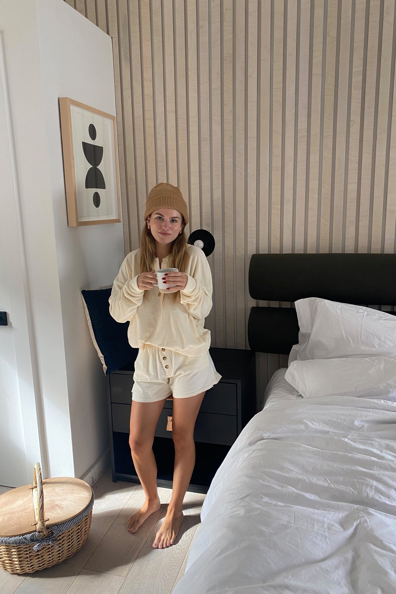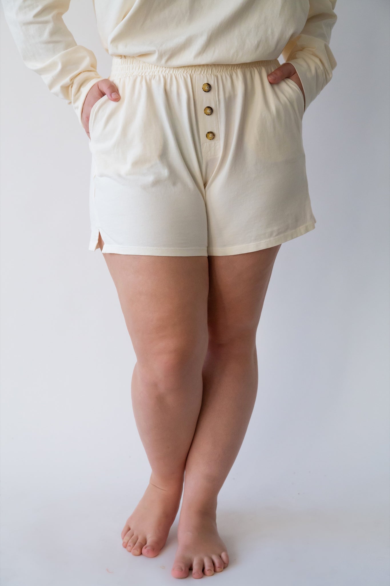 The perfect lounge shorts elevated with tortoise buttons and a high waist. Made in LA.