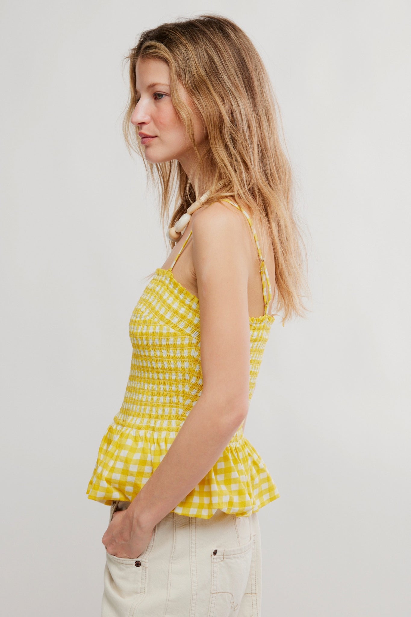 Effortless summer style meets comfort in this charming tank. Featuring delicate smocking across the bodice for a flattering fit, a playful ruffle hem that adds movement, and adjustable straps for a customized silhouette.