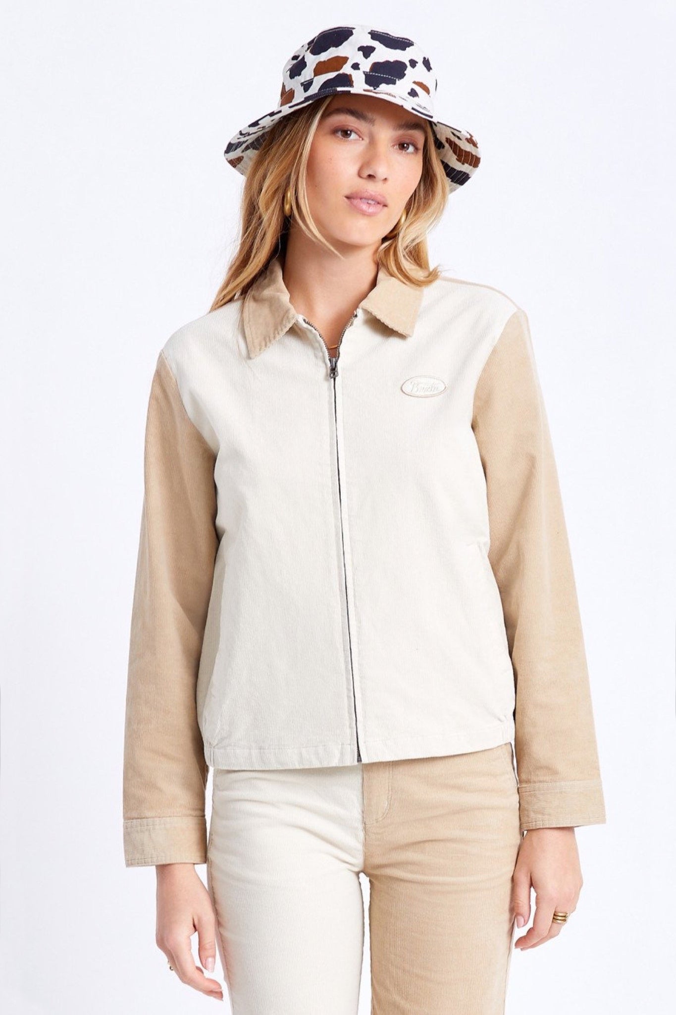 This is the most ideal lightweight bomber jacket to use for all seasons! Features a soft vanilla color and a cute little Brixton patch on the upper left side.