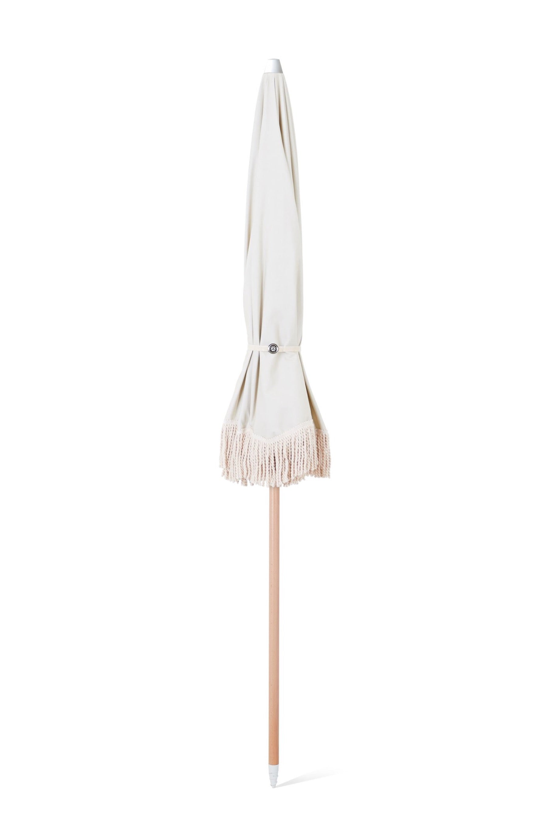 Classic shape and simple subtle colour ready for the beach, pool, deck or garden. Blend right in to the sandy landscapes or stand out with classic simplicity. All natural tones and quality finishes make for a basic essential with many uses. All umbrellas come with a matching carry bag.