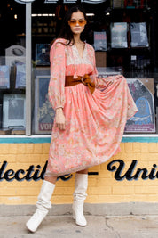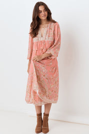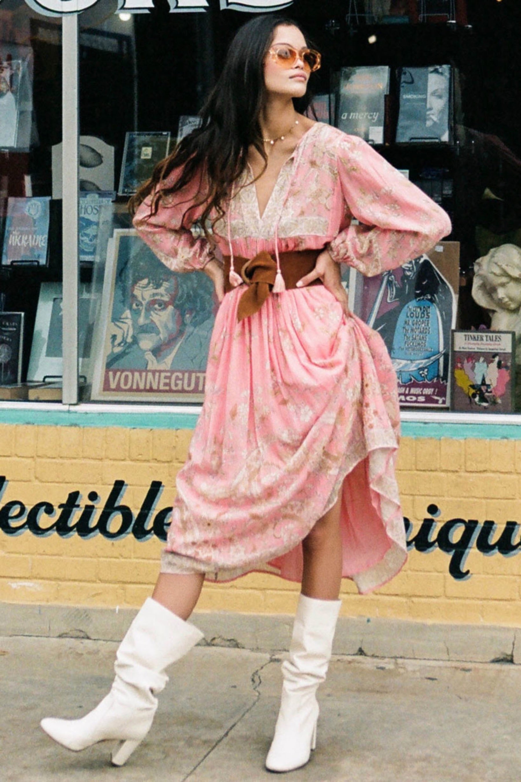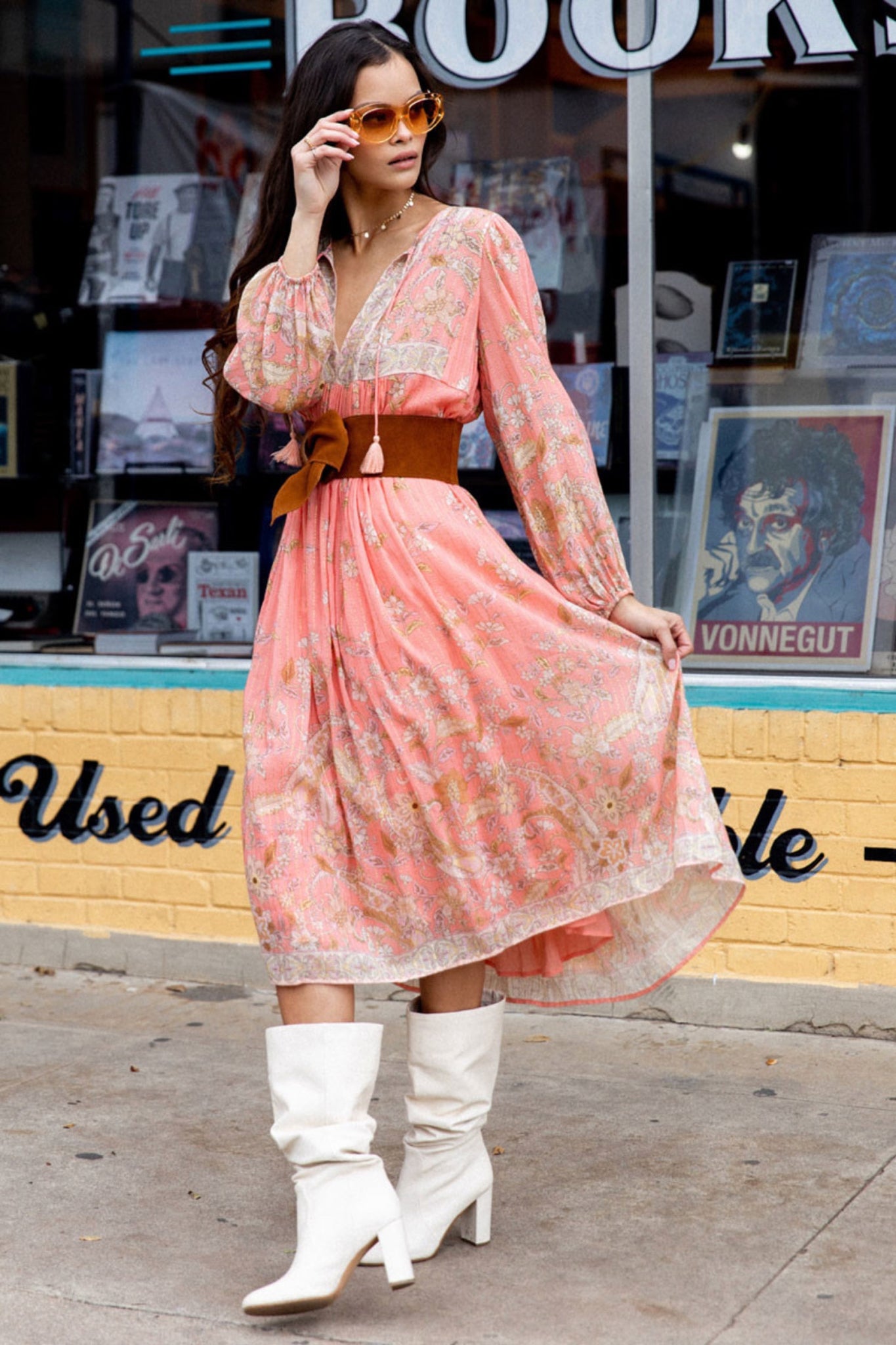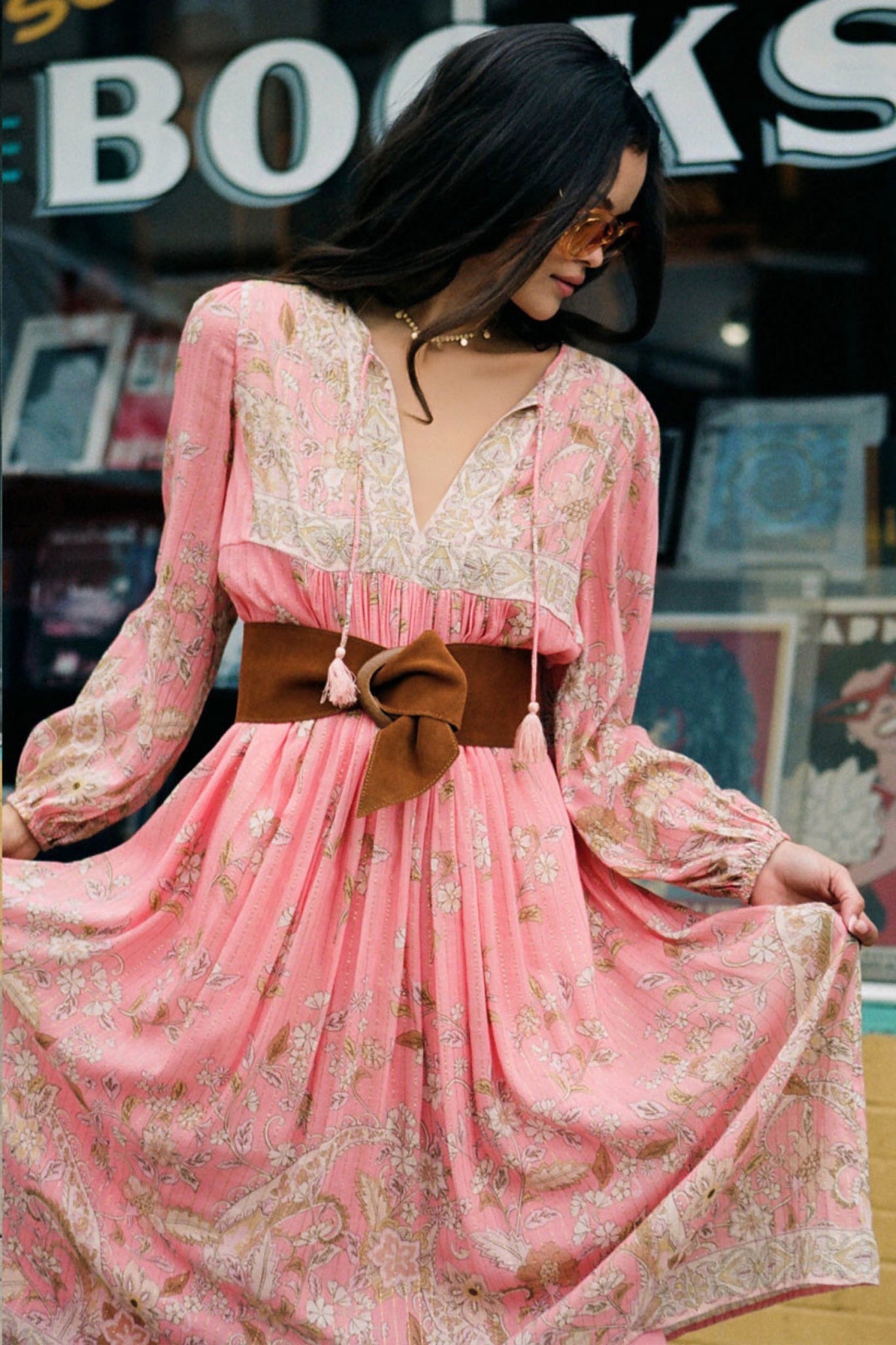 This dreamy dress with its stunning print placement on both the front and back yoke, is one for the dreamers and adds a laid-back, feminine charm to any occasion. Featuring gathers from the yoke, a neck tie with tassel and an elastic sleeve cuff to gently billow the sleeve, this ever-popular style is instantly disarming and easy to love.