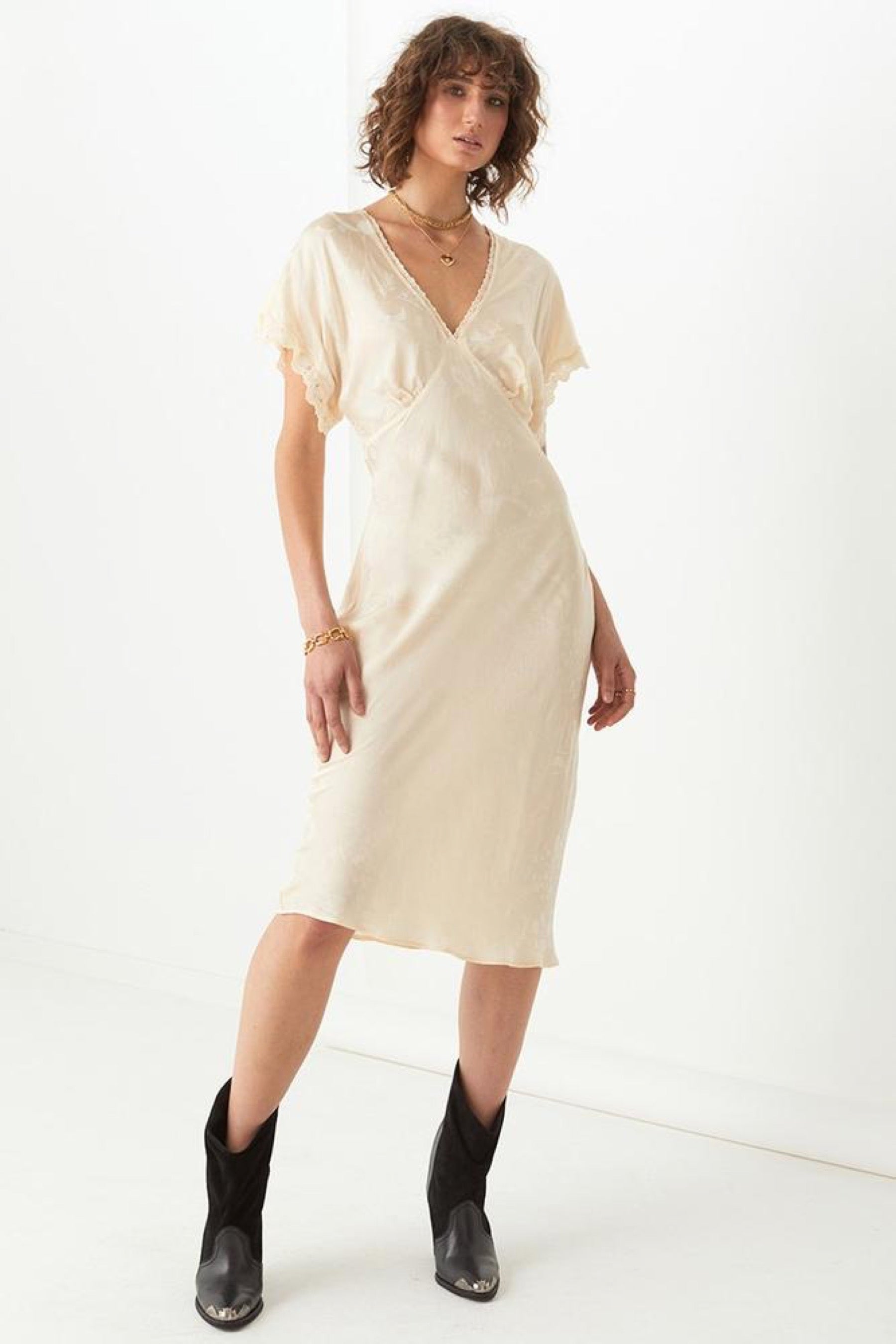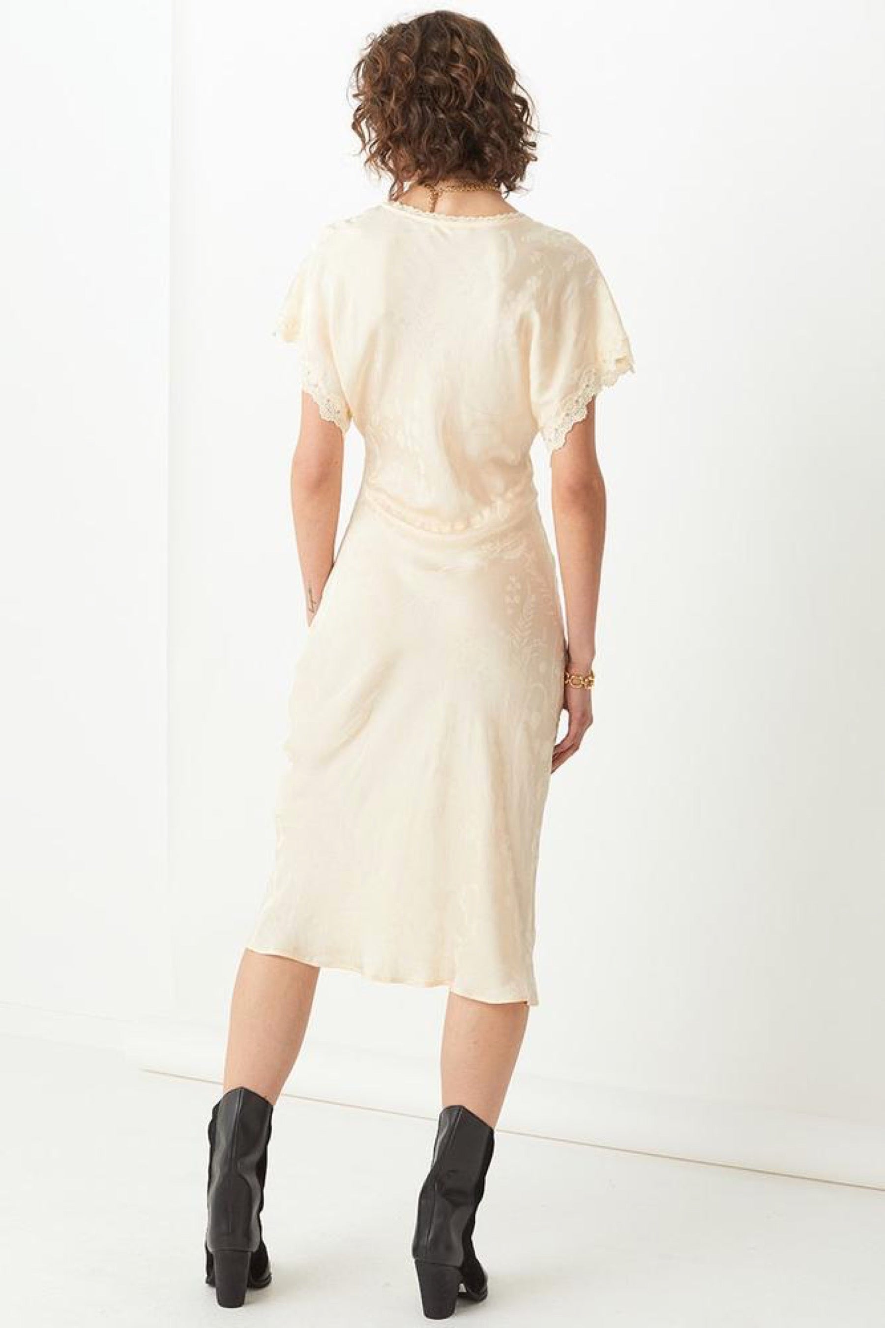 Inspired by the femininity of 1930's screen sirens, this romantic design features a classic V-neck, trimmed with delicate lace and a timeless, stunning elegance that makes it one to hold on to.