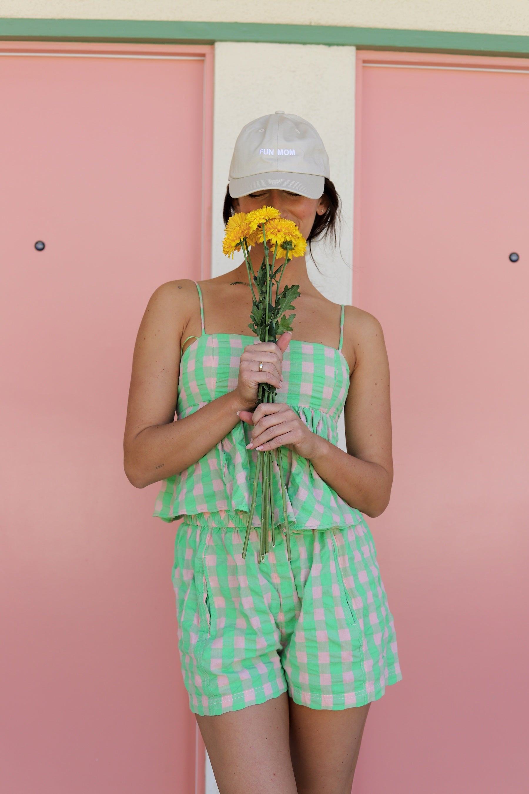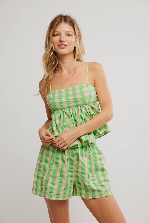 So fun and femme, this cropped tank features a voluminous pleated peplum and open back, all in a sweet plaid print for the perfect patterned touch.