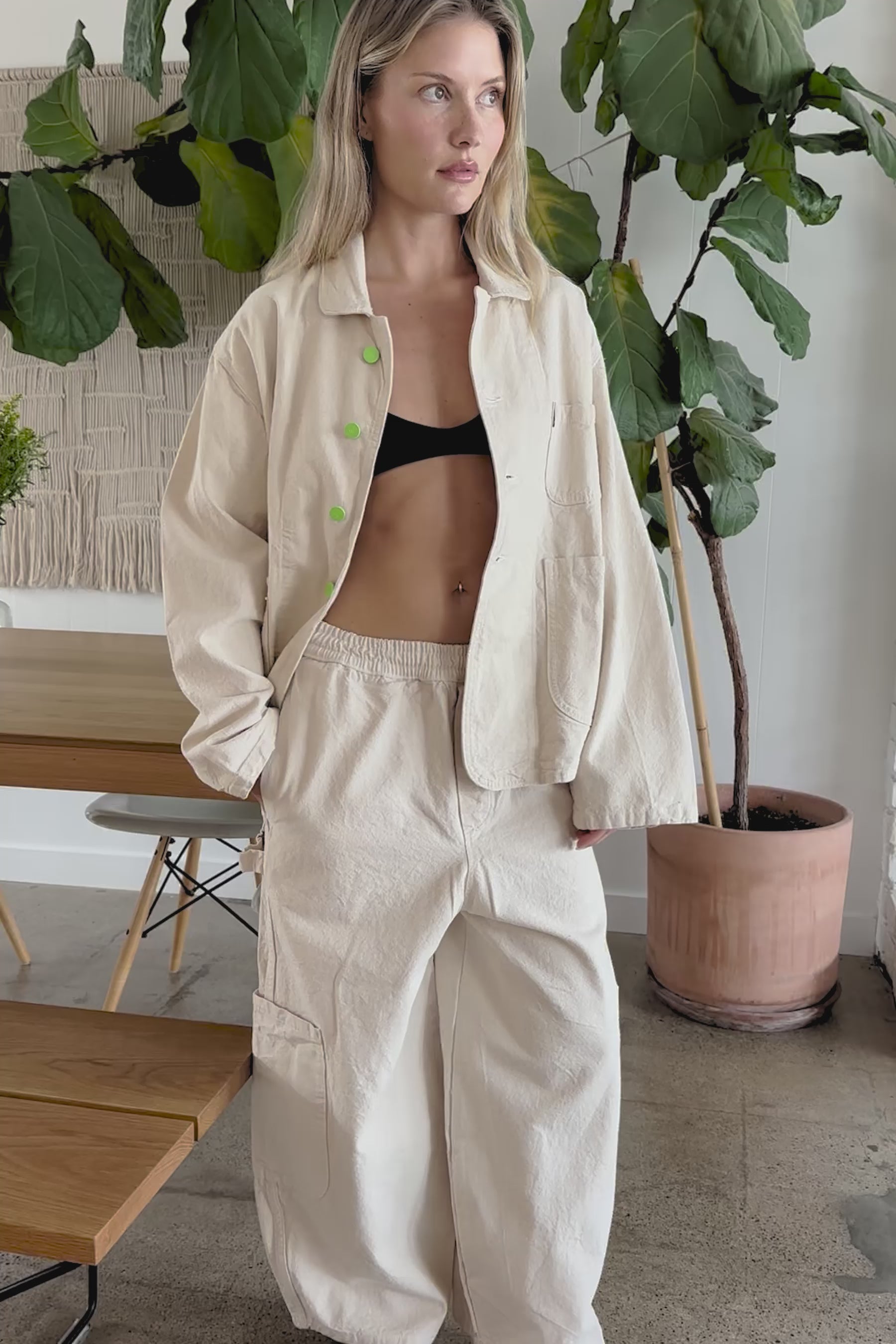 Hearty canvas jacket in soft washed cotton with a full cut and three big pockets for sandwiches. Made entirely in Los Angeles.
