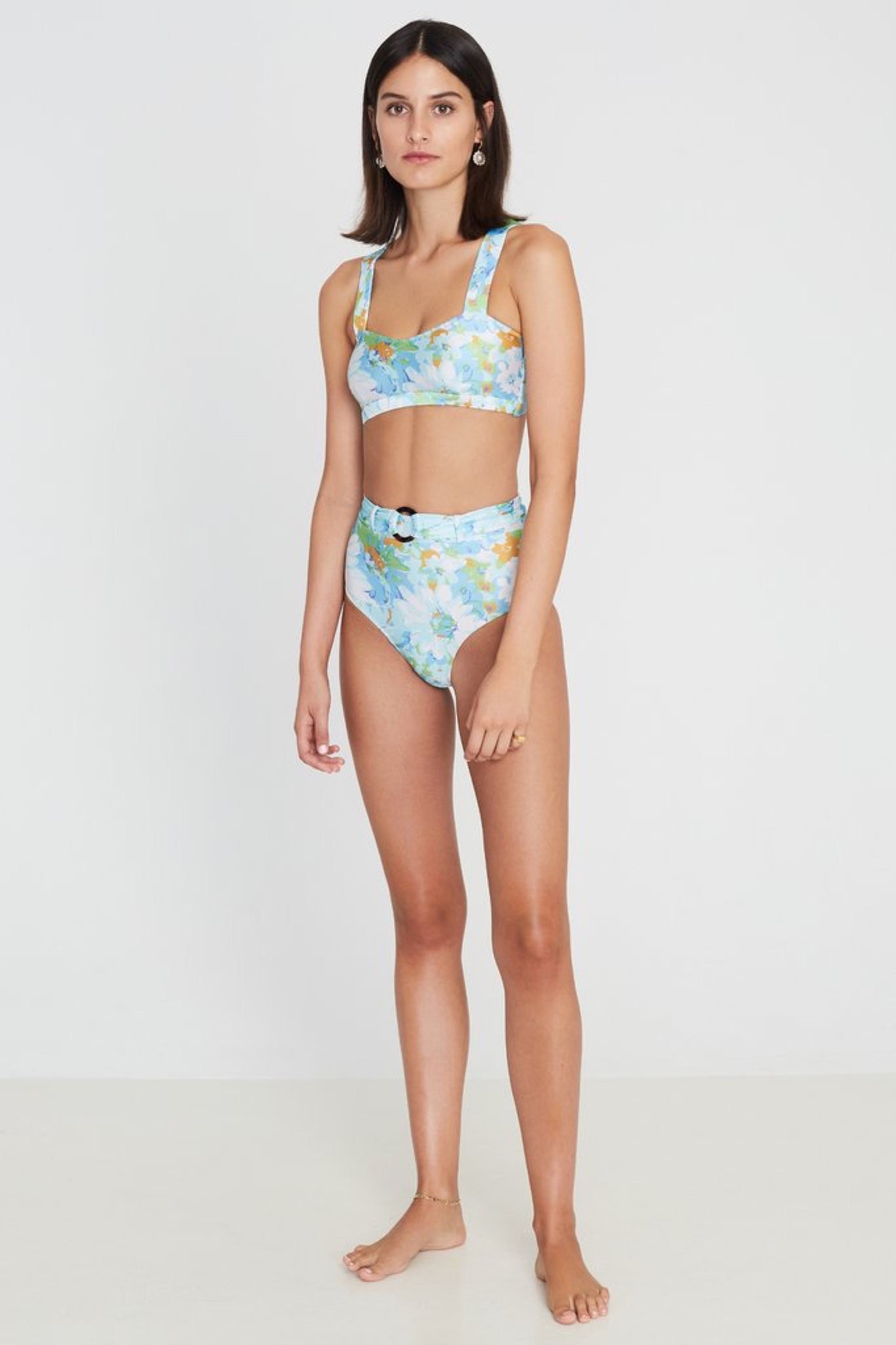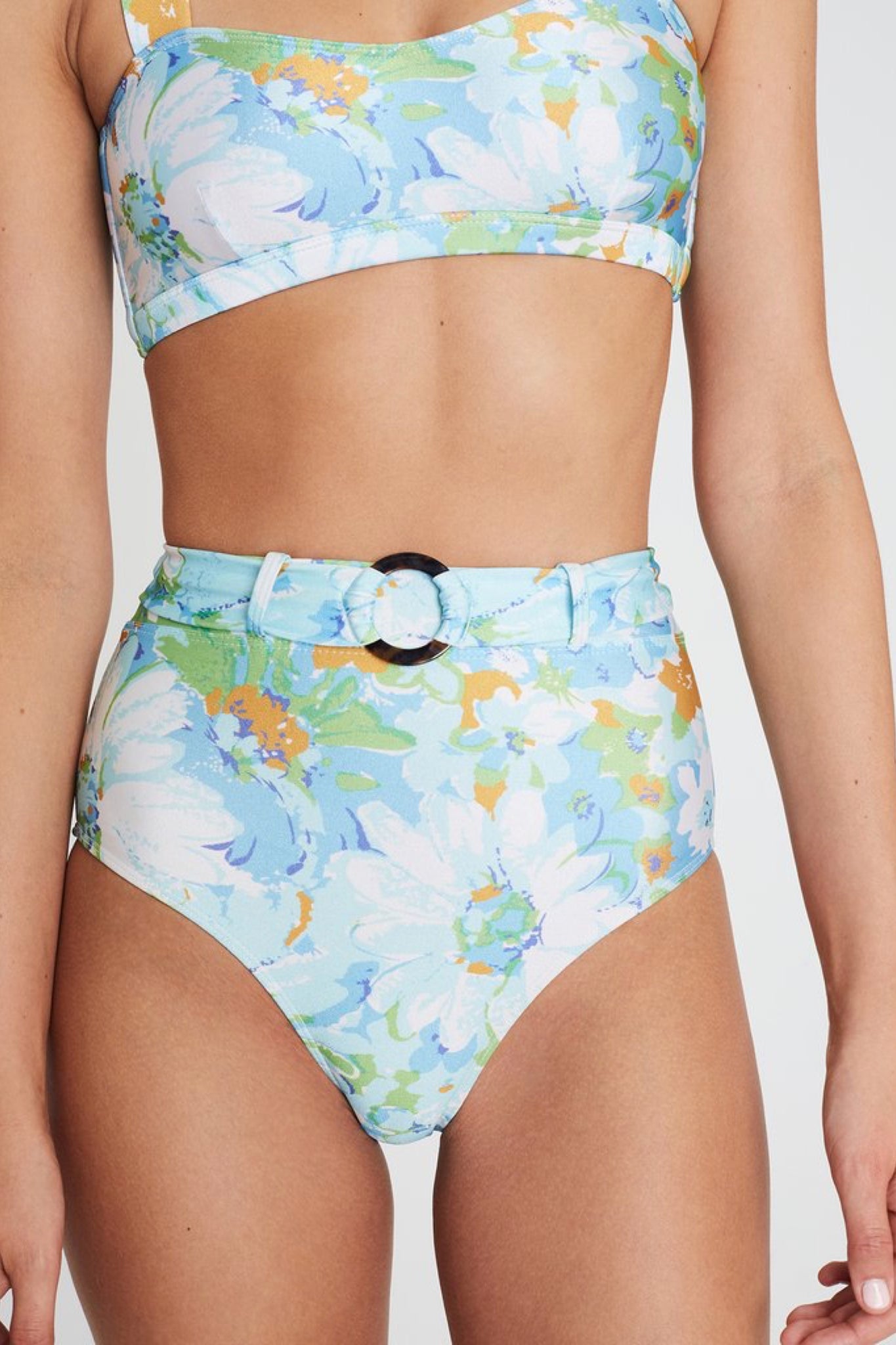 The Lavande Bottoms are a fully lined high waist bikini bottom, featuring a tortoise shell waist belt and vintage inspired cut through the leg, providing full coverage. We love when paired with the provence top for an elevated poolside look.