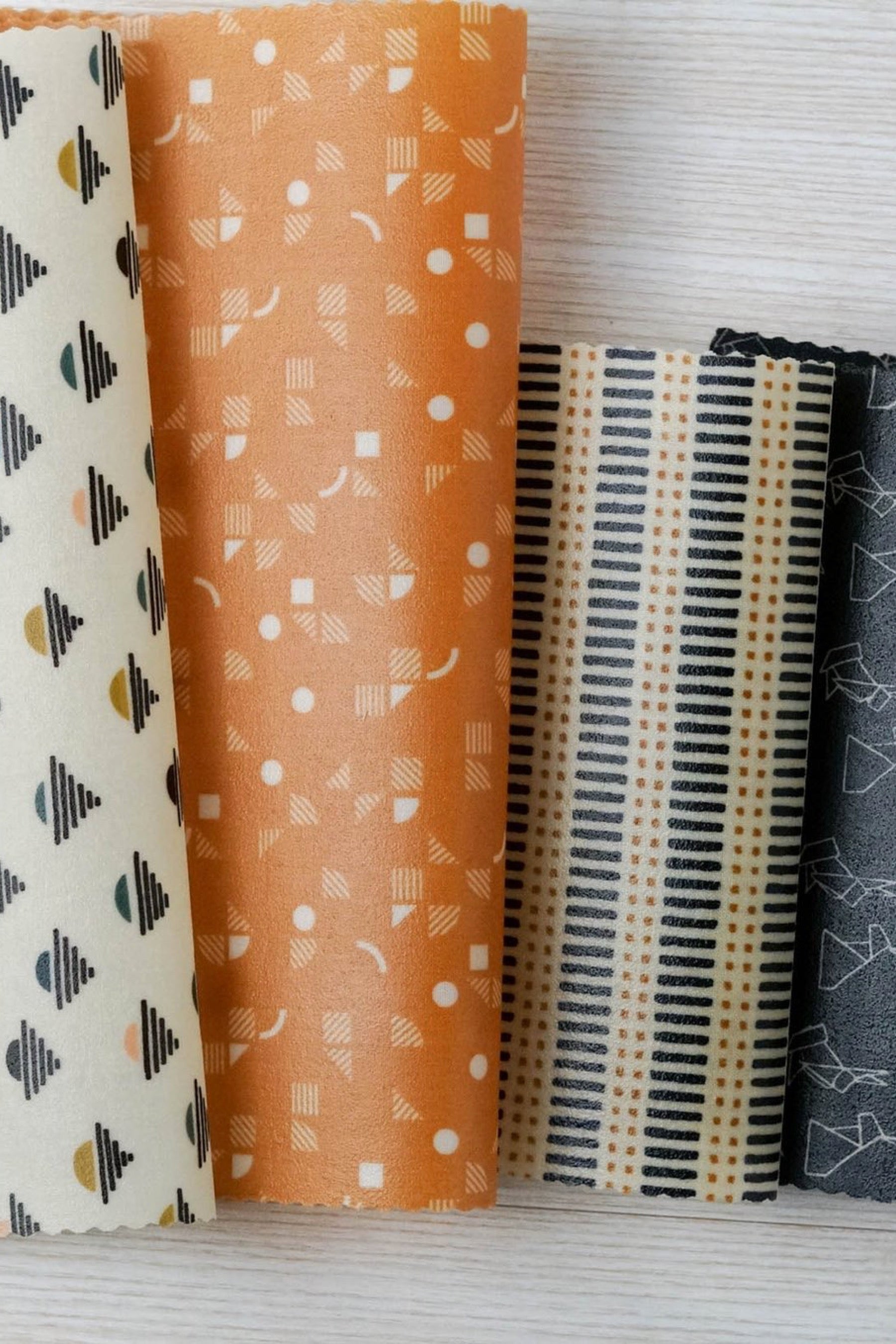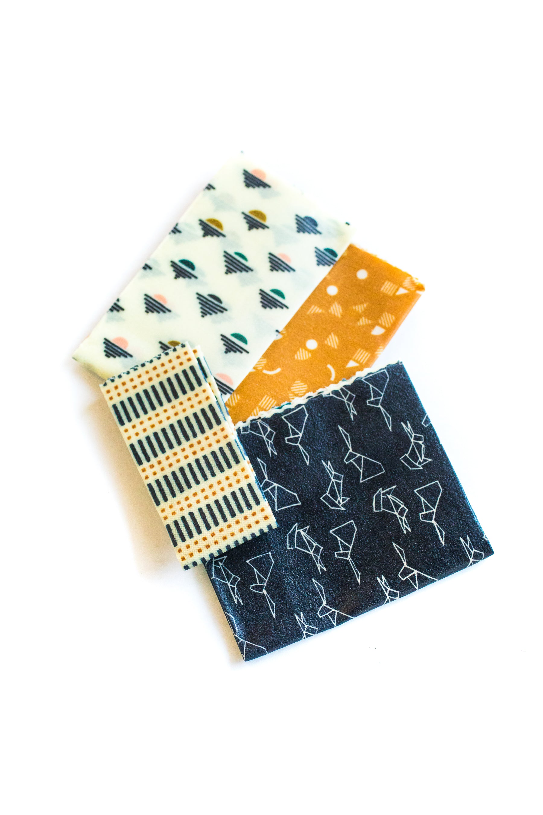 This listing is for 1 set of 5 reusable, all-natural, beeswax wraps. These small batch limited prints are made with beeswax, pine rosin, organic jojoba oil, and organic cotton cloth.