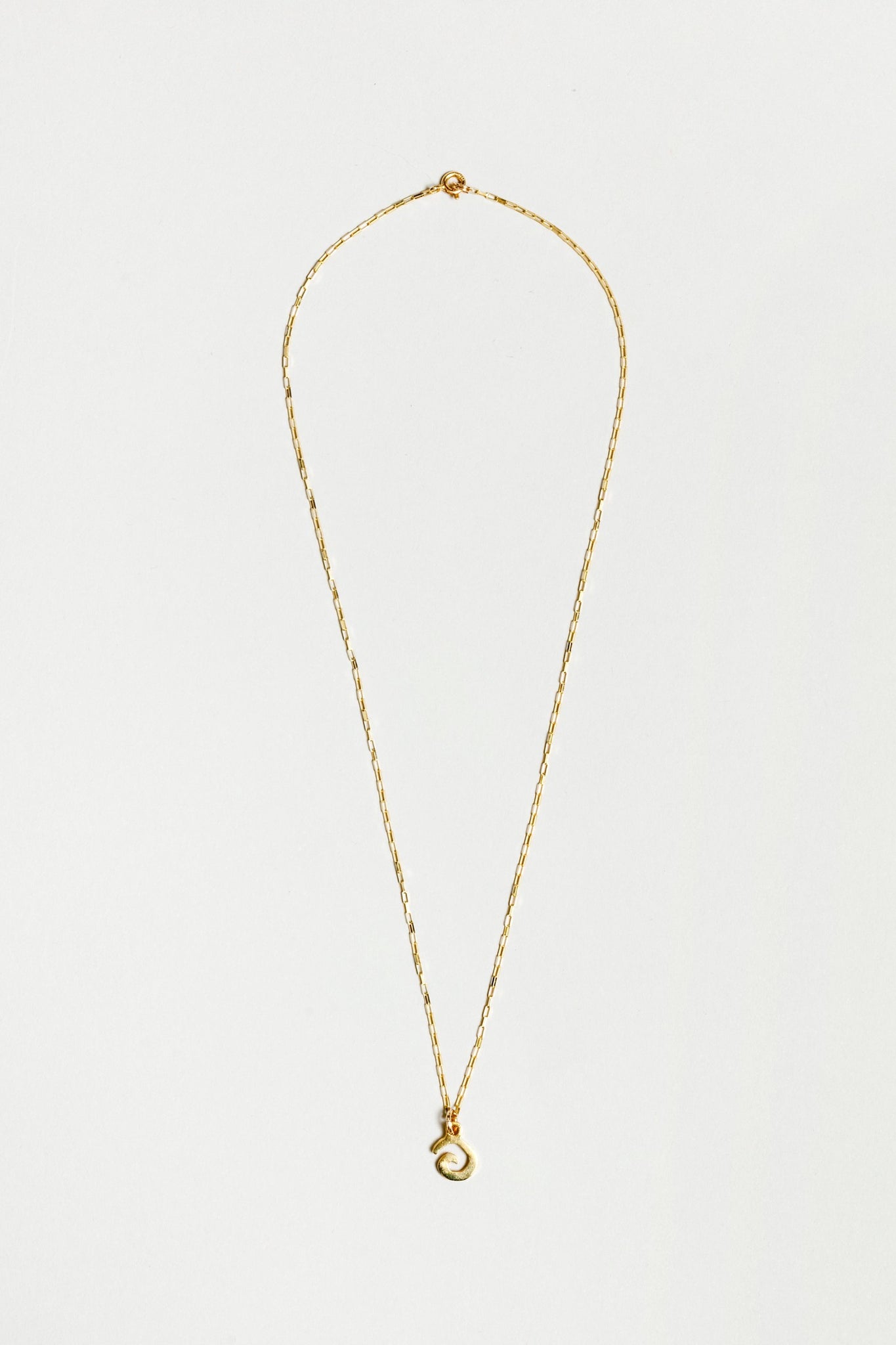 Gold box chain necklace featuring a removable swirl charm. Made with recycled metals in Canada.