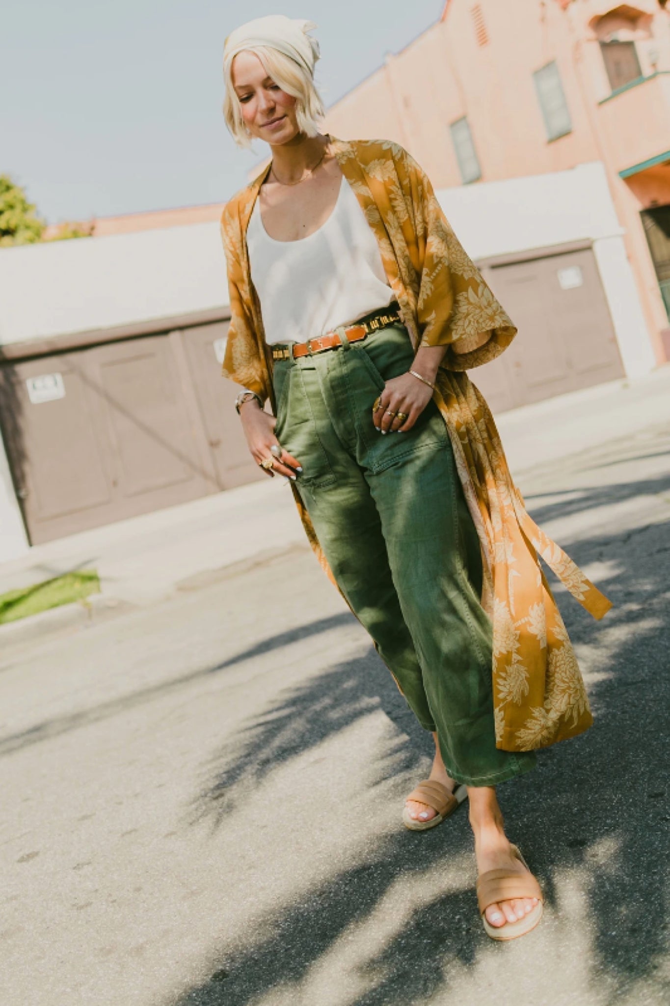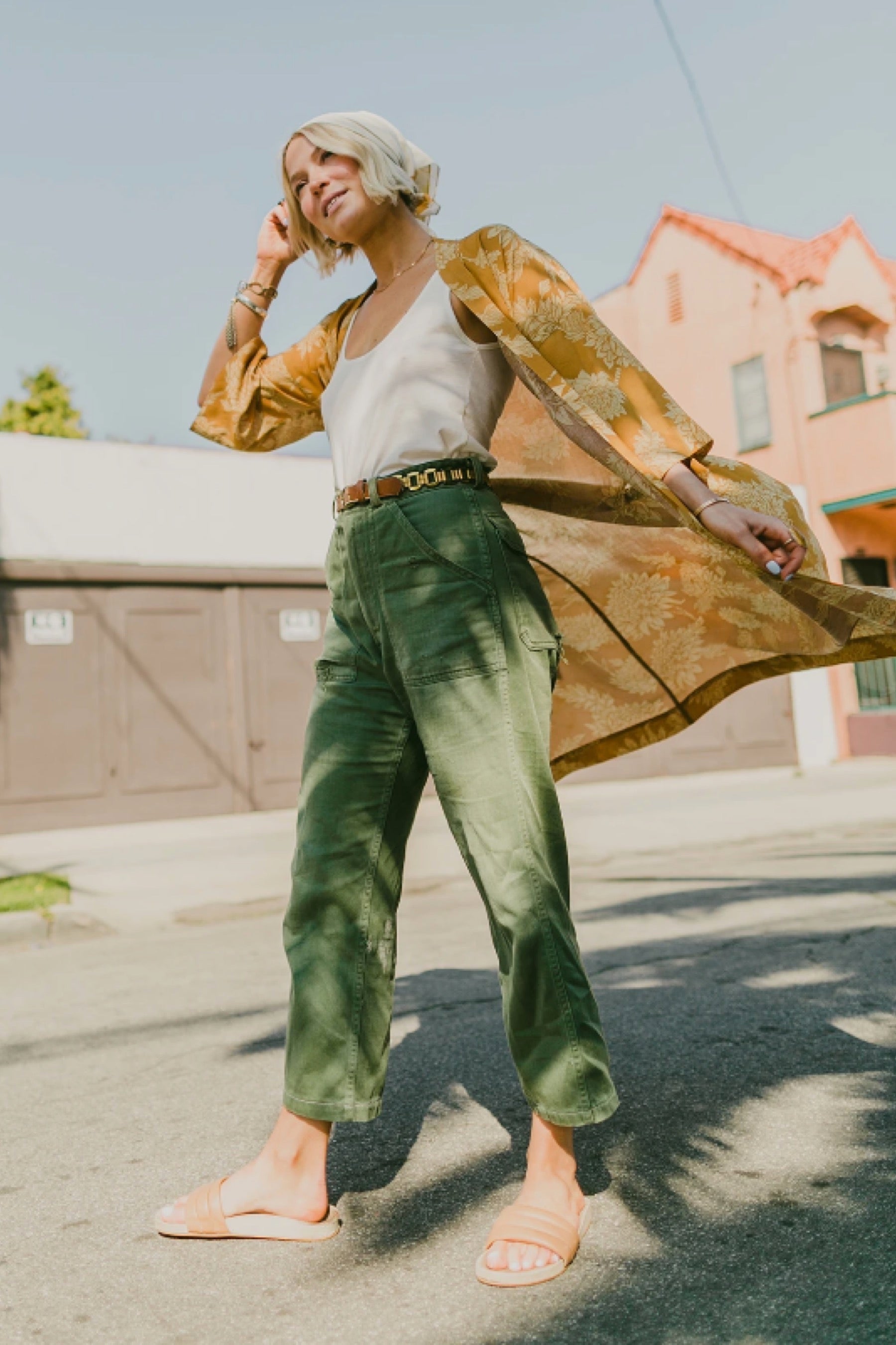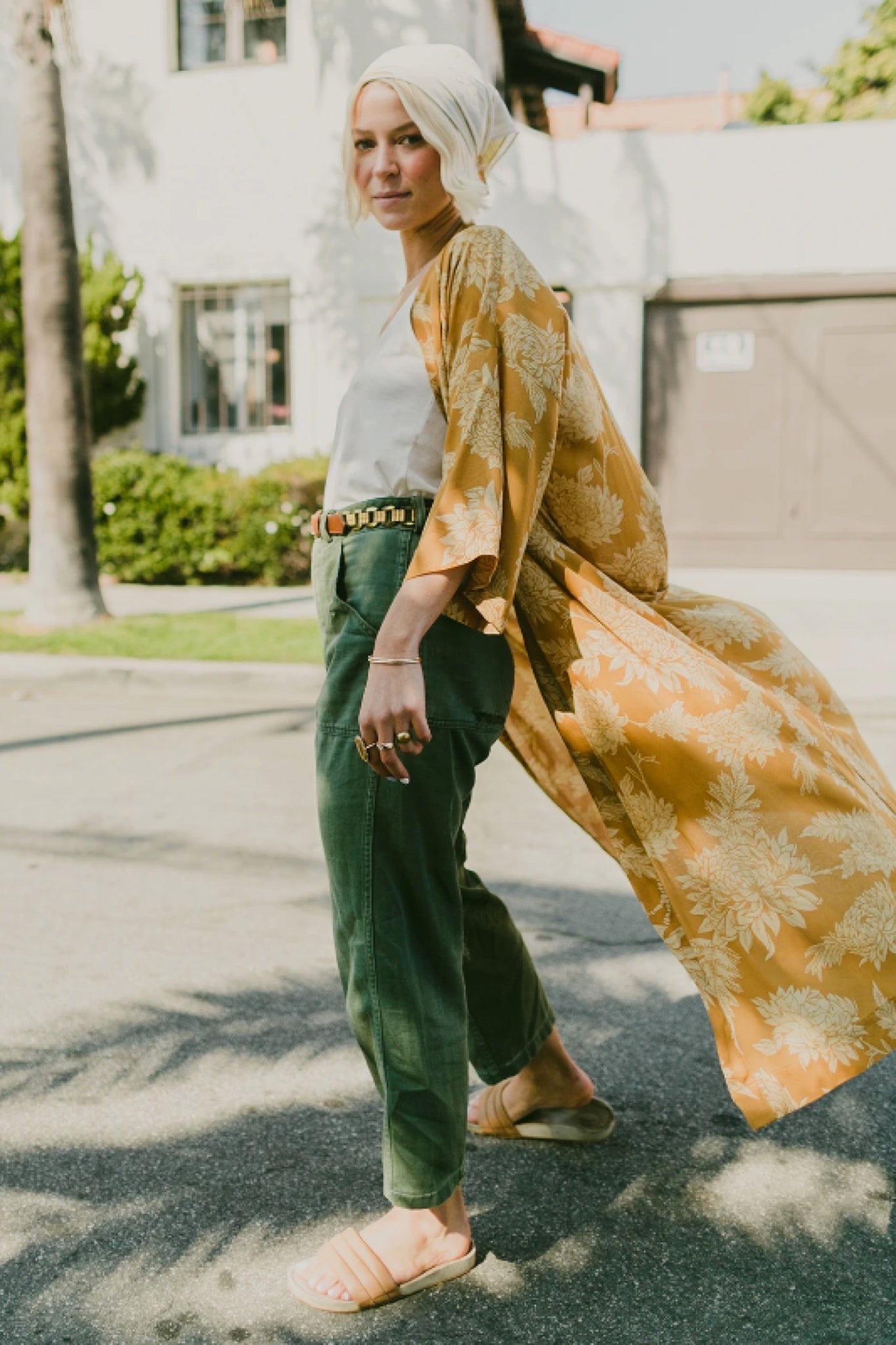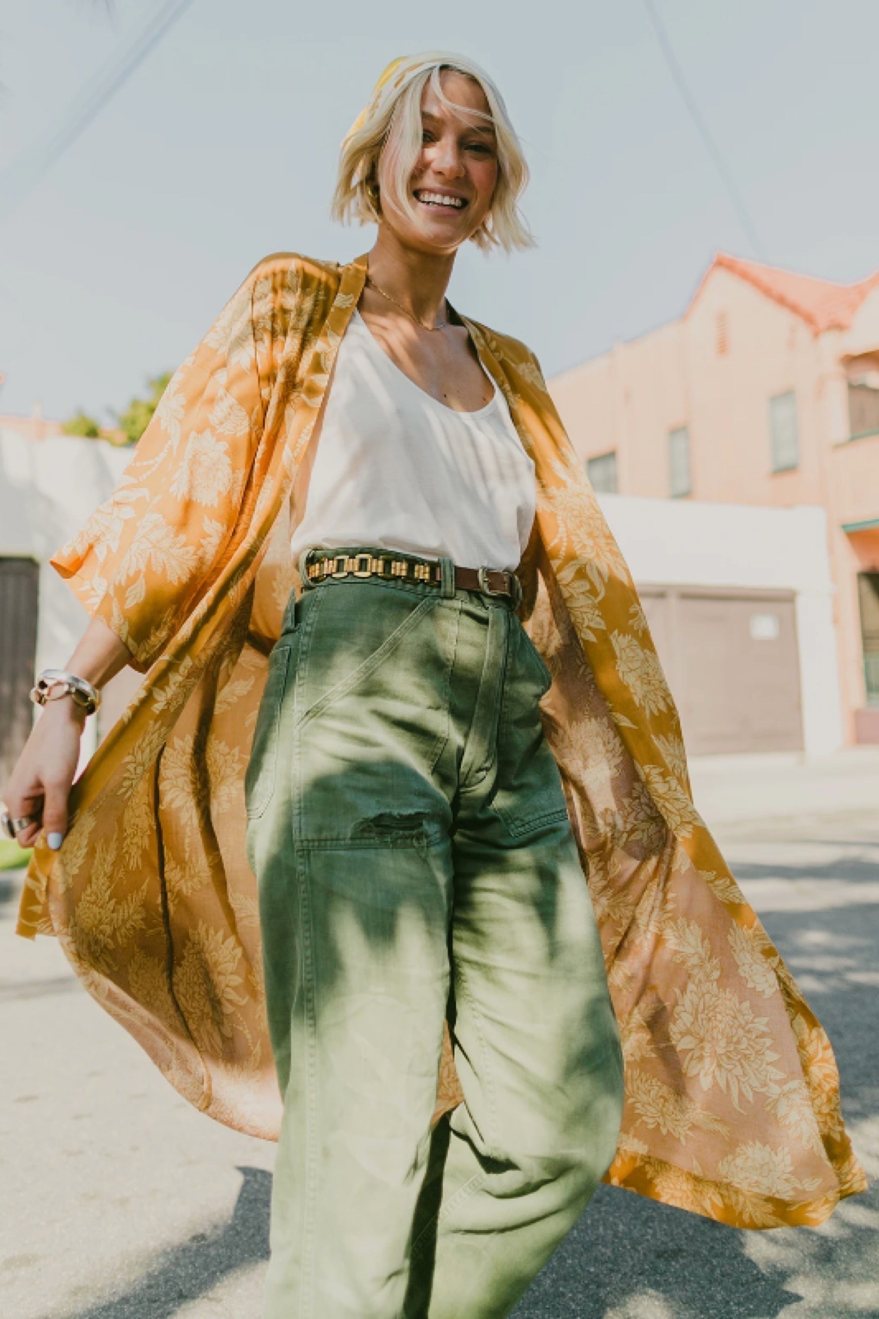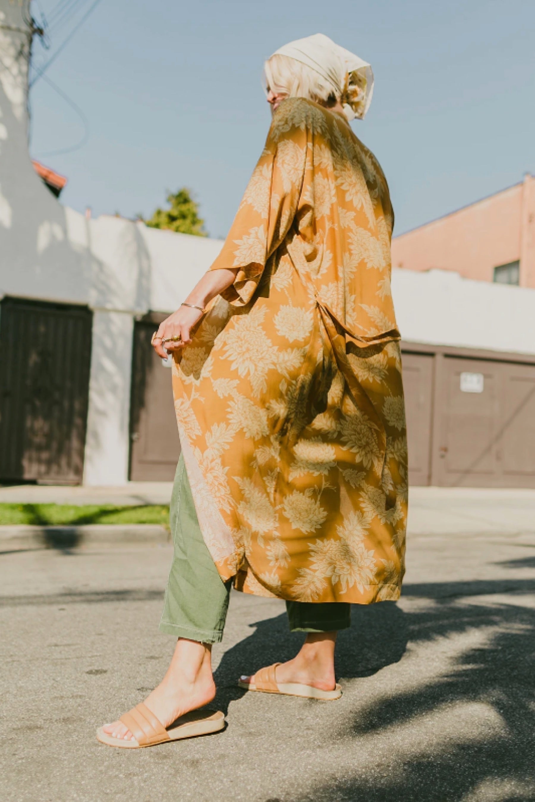 Get groovy in this amazing printed kimono! Wear around the house for a dose of luxury on the daily, or pair with pants or over swim for an easy, breezy look. Made in California.