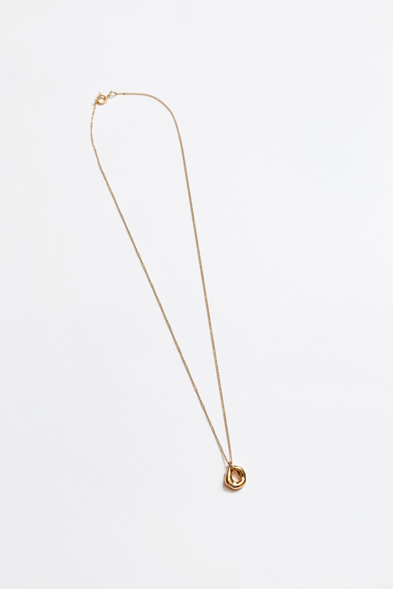 Simple gold chain necklace featuring a textured oval pendant. Made with recycled metals in Canada.