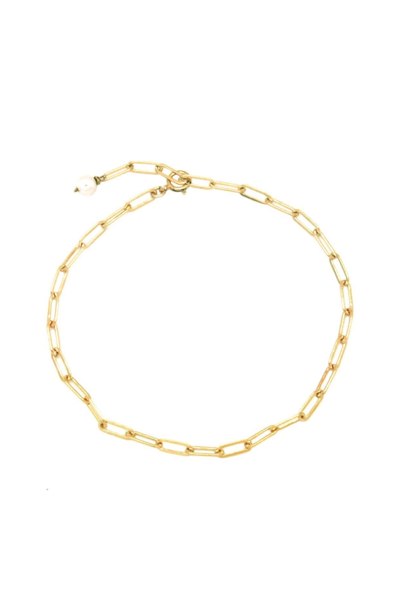 Elongated oval link chain bracelet with a genuine pearl accent. Made in Los Angeles with love and our mother earth in mind.