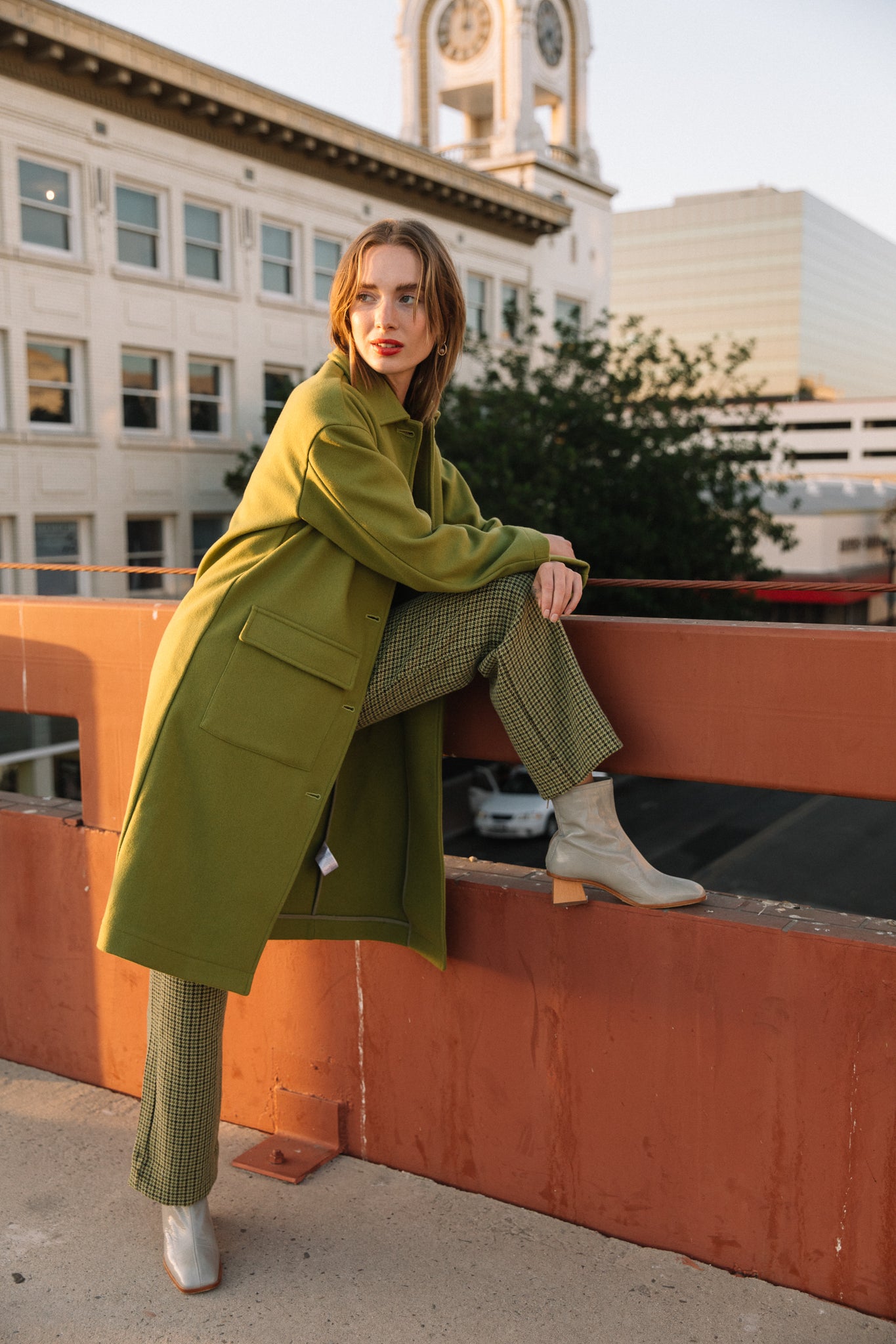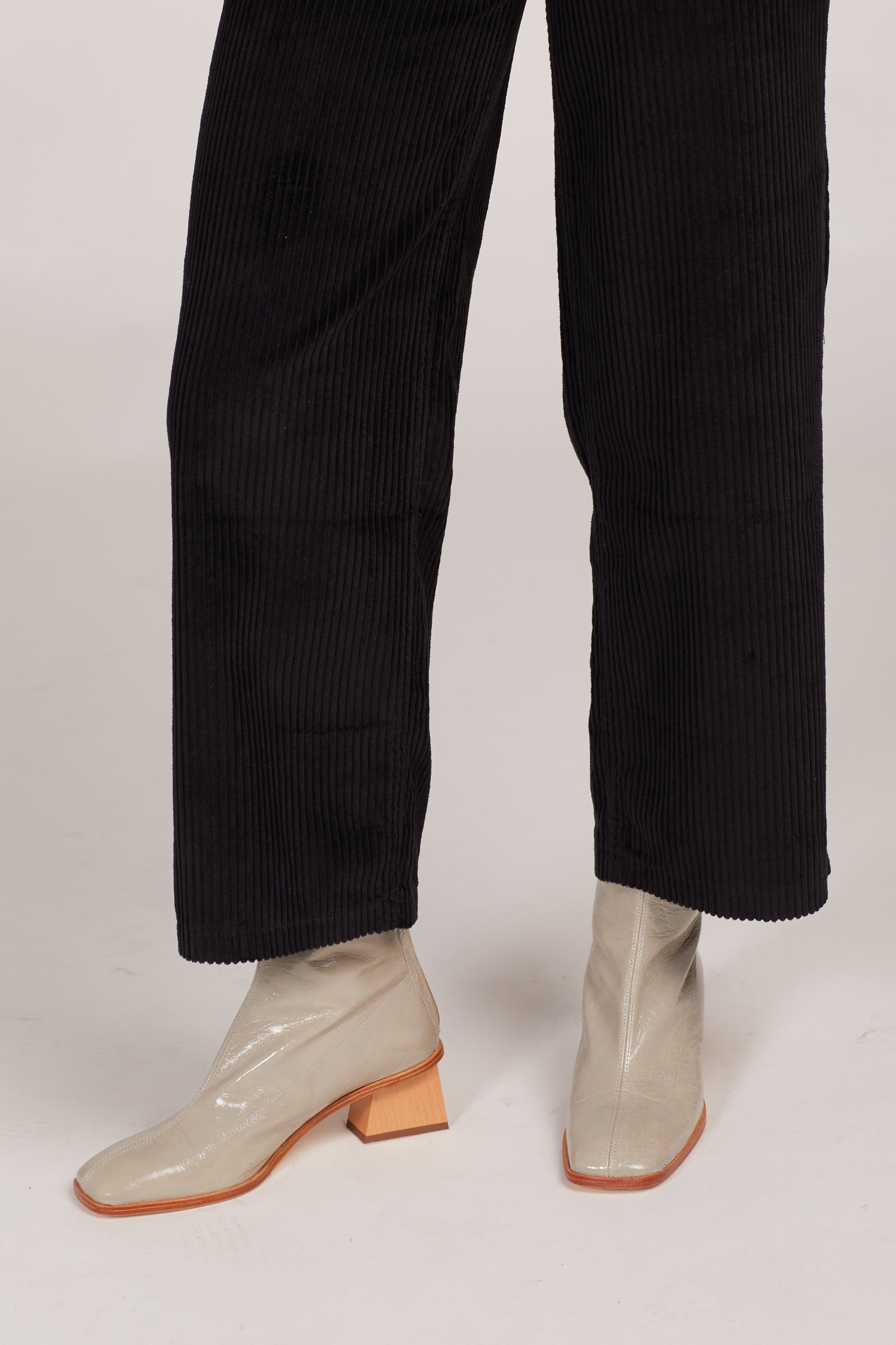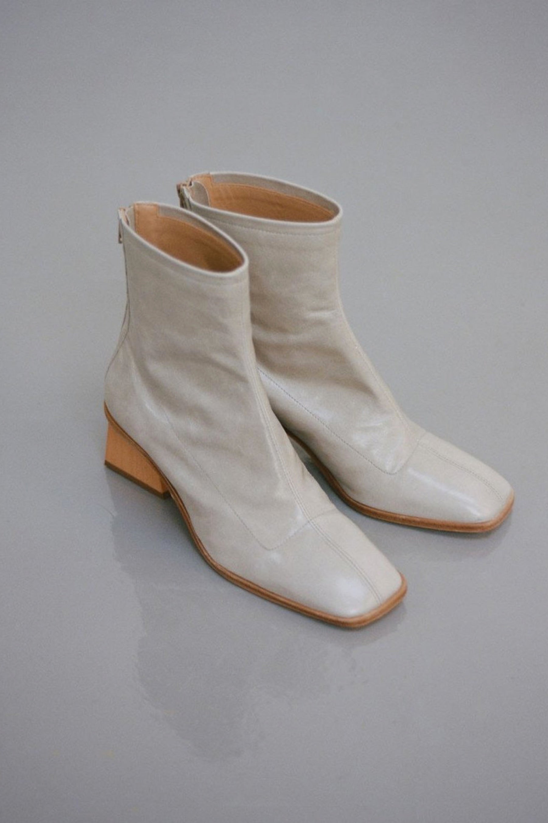 Ankle boots with back zip fastening. Geometric wooden 5 cm heel and leather sole.