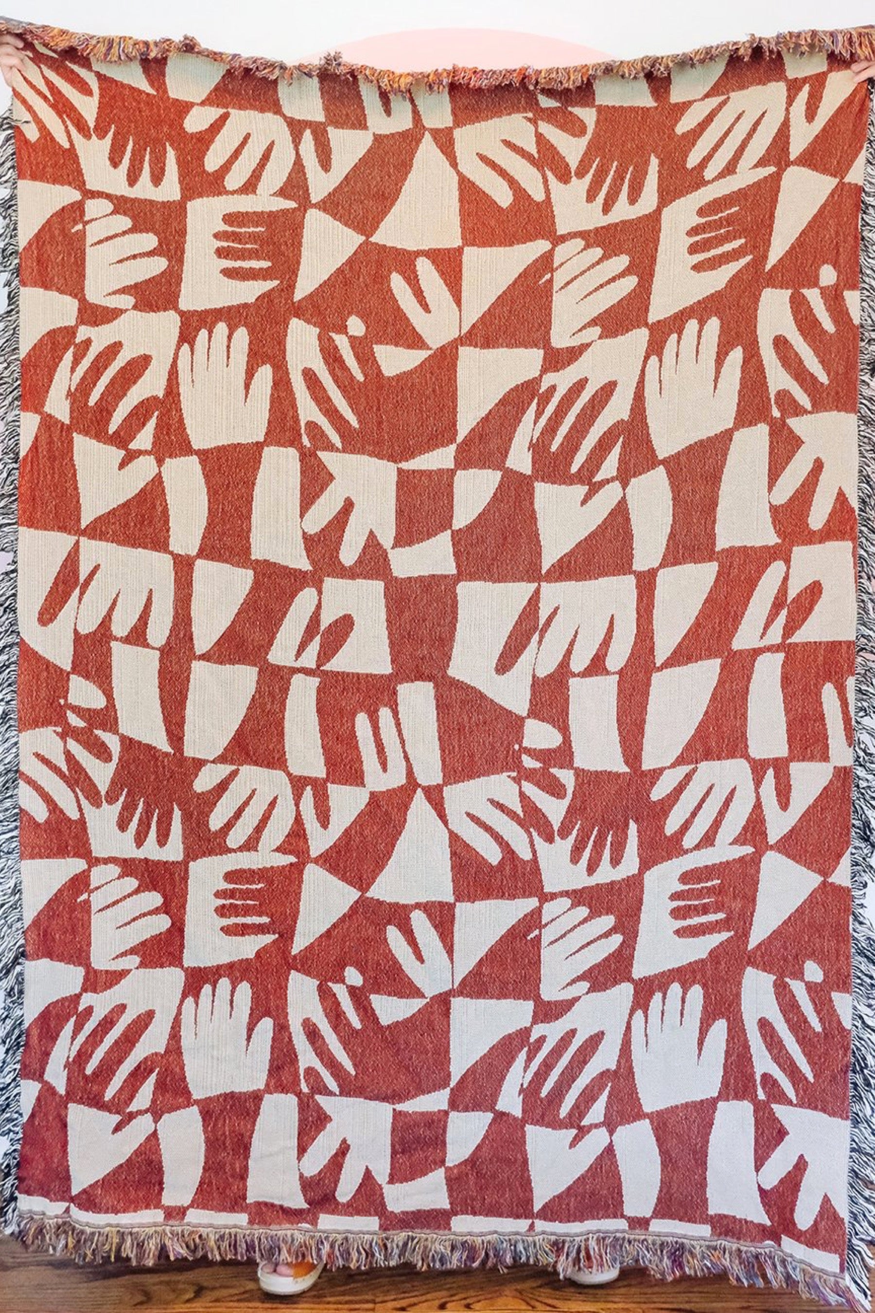 The Hand print represents choosing to find common ground and reach out to those who are different than us. A beautiful print with a powerful message. The perfect cozy addition to your Dazey Den! Soft and luxurious blankets woven in USA. Heavy and high quality, yet breathable due to cotton and weaving technique.