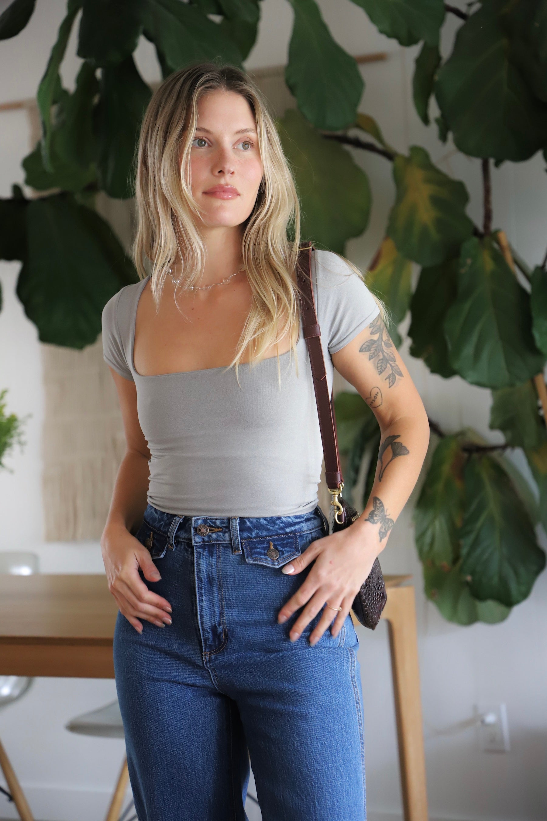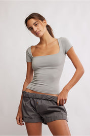 A new addition to your favorite seamless collection, this ultra-soft tee is featured in a slim-fitting silhouette with a square neckline and cap-inspired sleeves.
