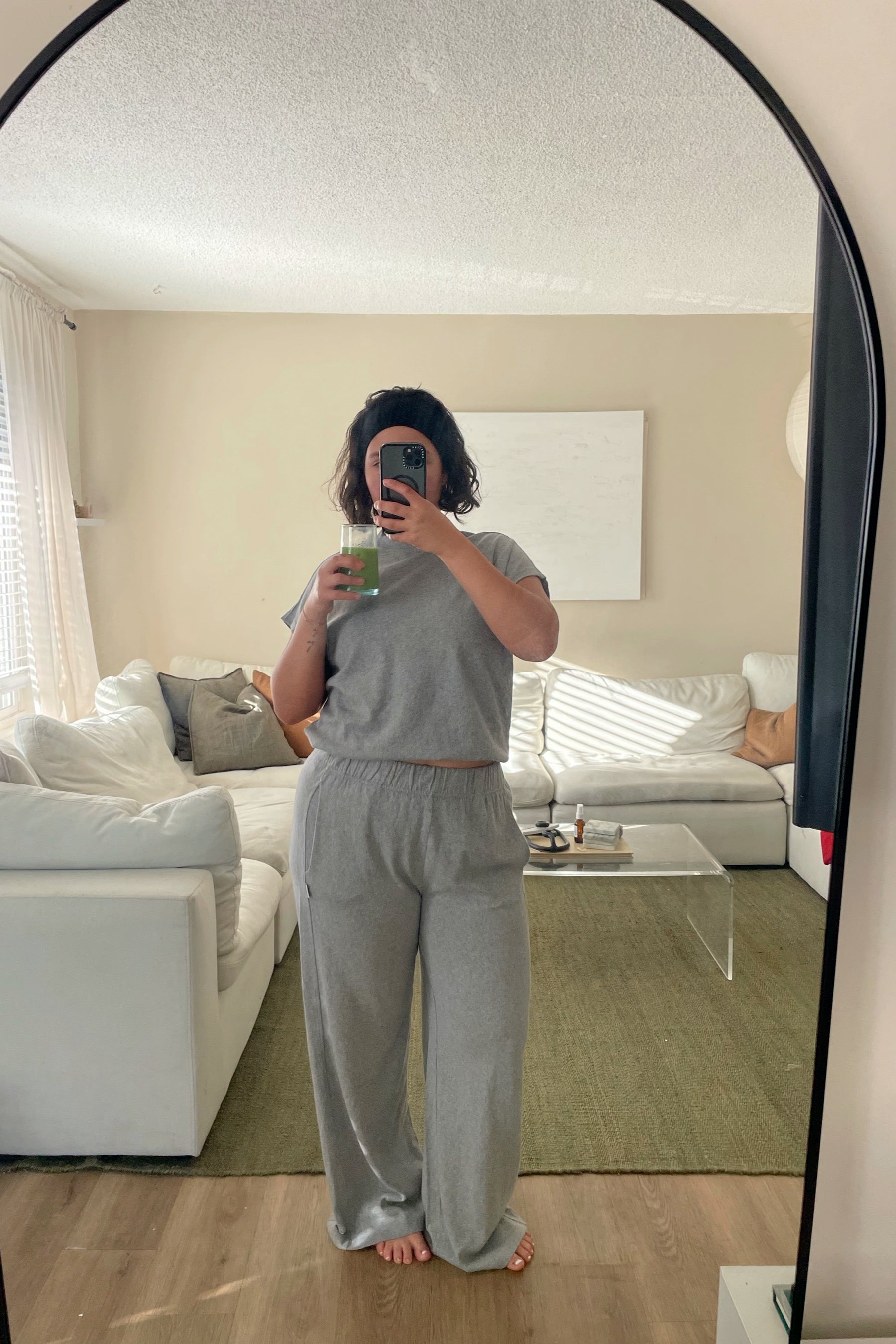 A refined twist on a classic silhouette, the Fei Tee takes design cues from the Jeanne Tee, such as its boxy frame and cap sleeves. It also adopts newer elements from the Daisy Long Sleeve Top like an elasticated hem. This feature offers a fun alternative to tucking in the tee, creating effortless volume — perfect for pairing with high-waisted bottoms.