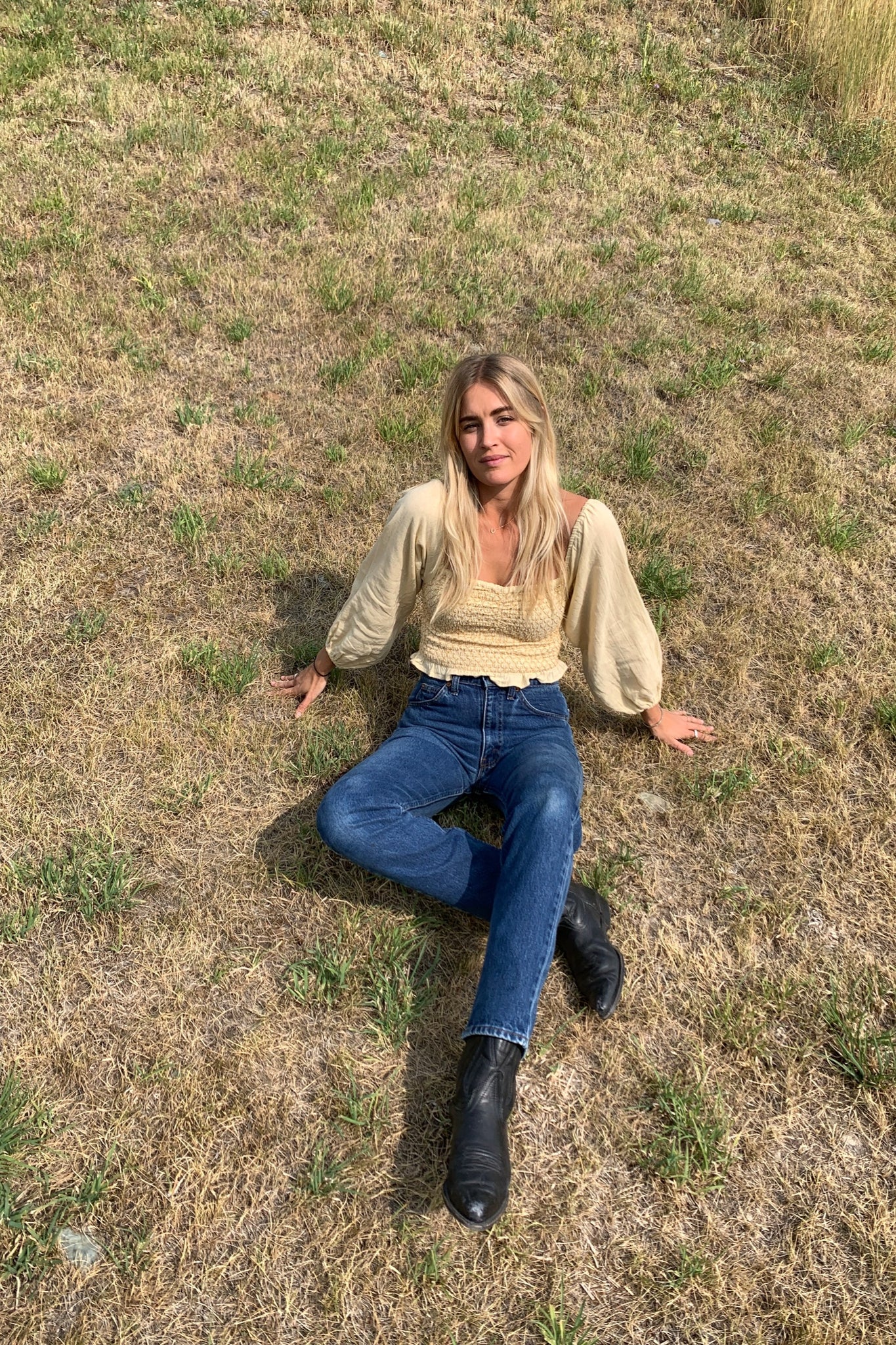 A softened silhouette and hints of gentle romance come together in the beguiling Jesse Jane Blouse. Expertly crafted, a stunning shirred bodice with smocking detail blend beautifully with a gathered frill at the waist, poetic puff sleeve and an elasticated v-neckline, all unlined and finished with an elasticated sleeve opening.
