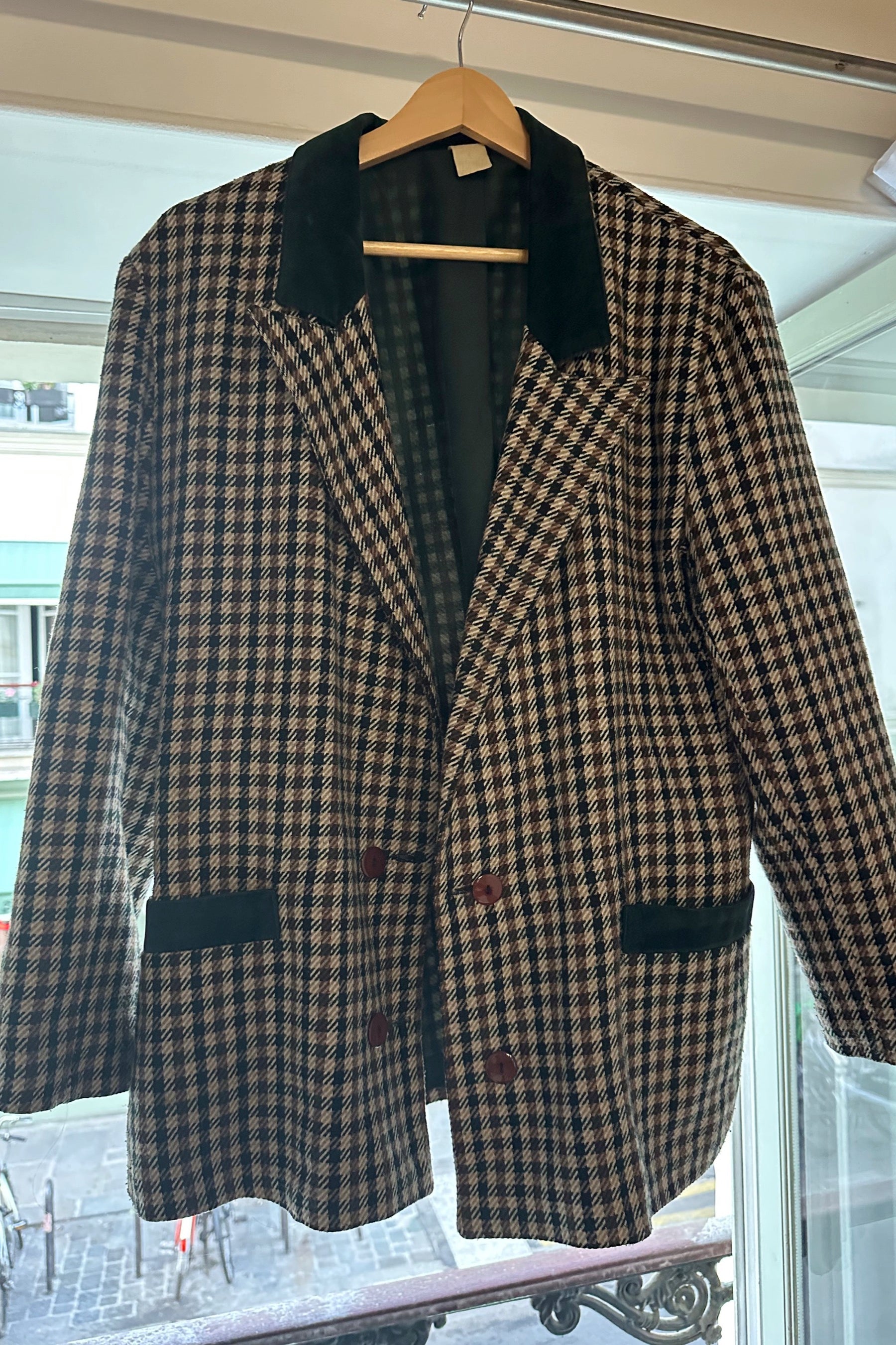Houndstooth + Green Velvet Jacket