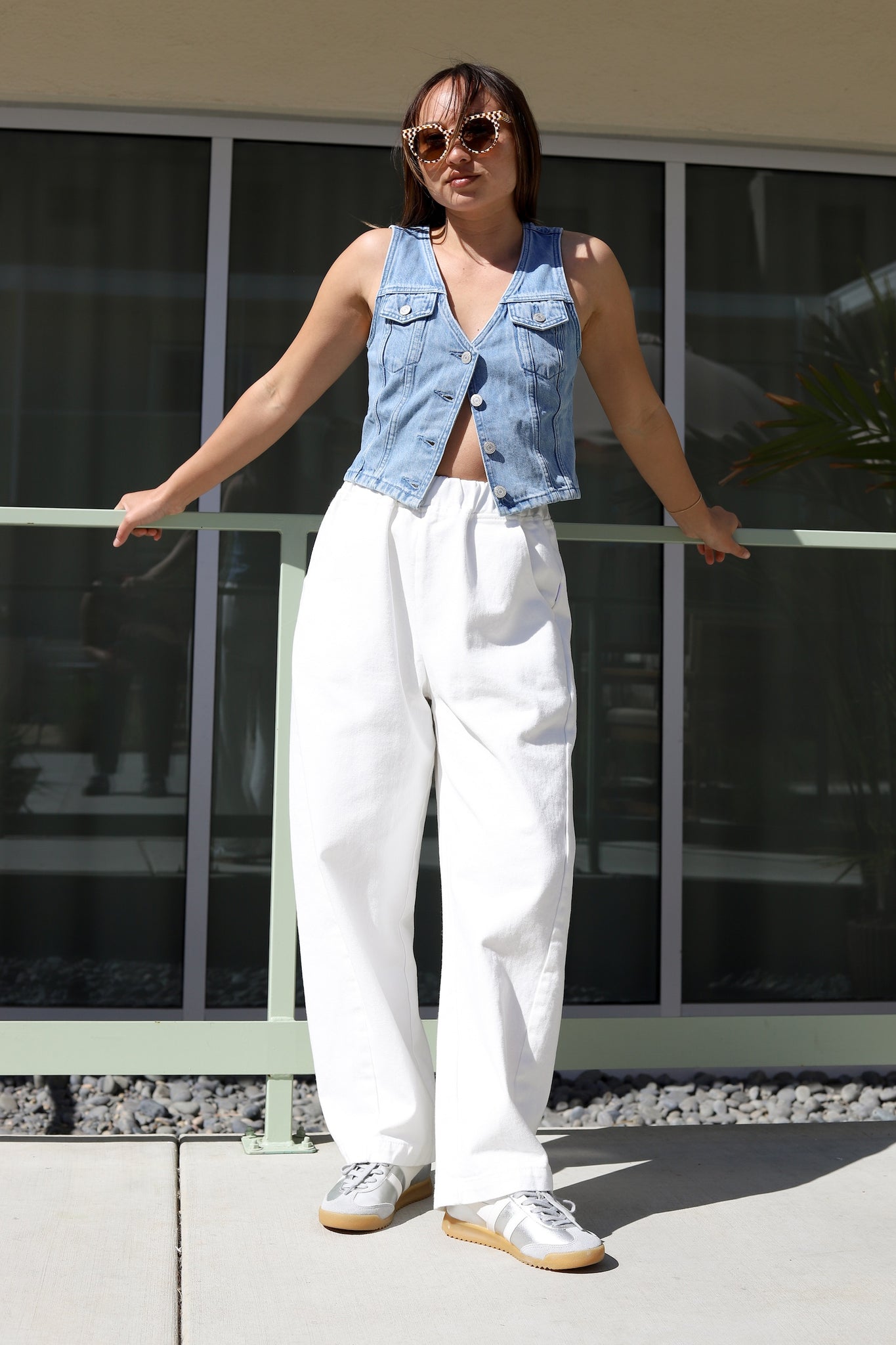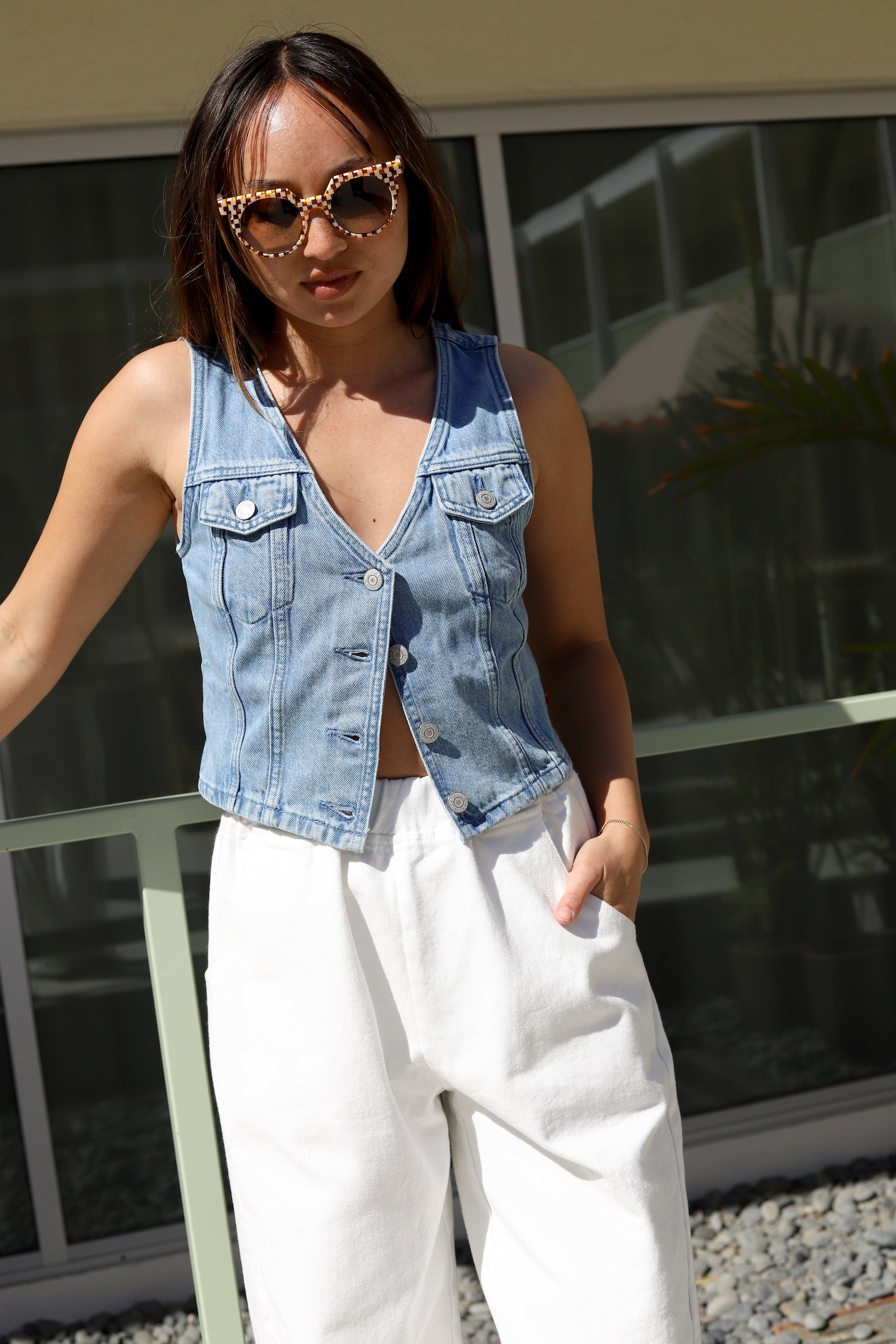 A figure-hugging corset made to pair with your favorite denim. Our Bella Denim Corset features a V-neckline, two small chest pockets and a button-up front.