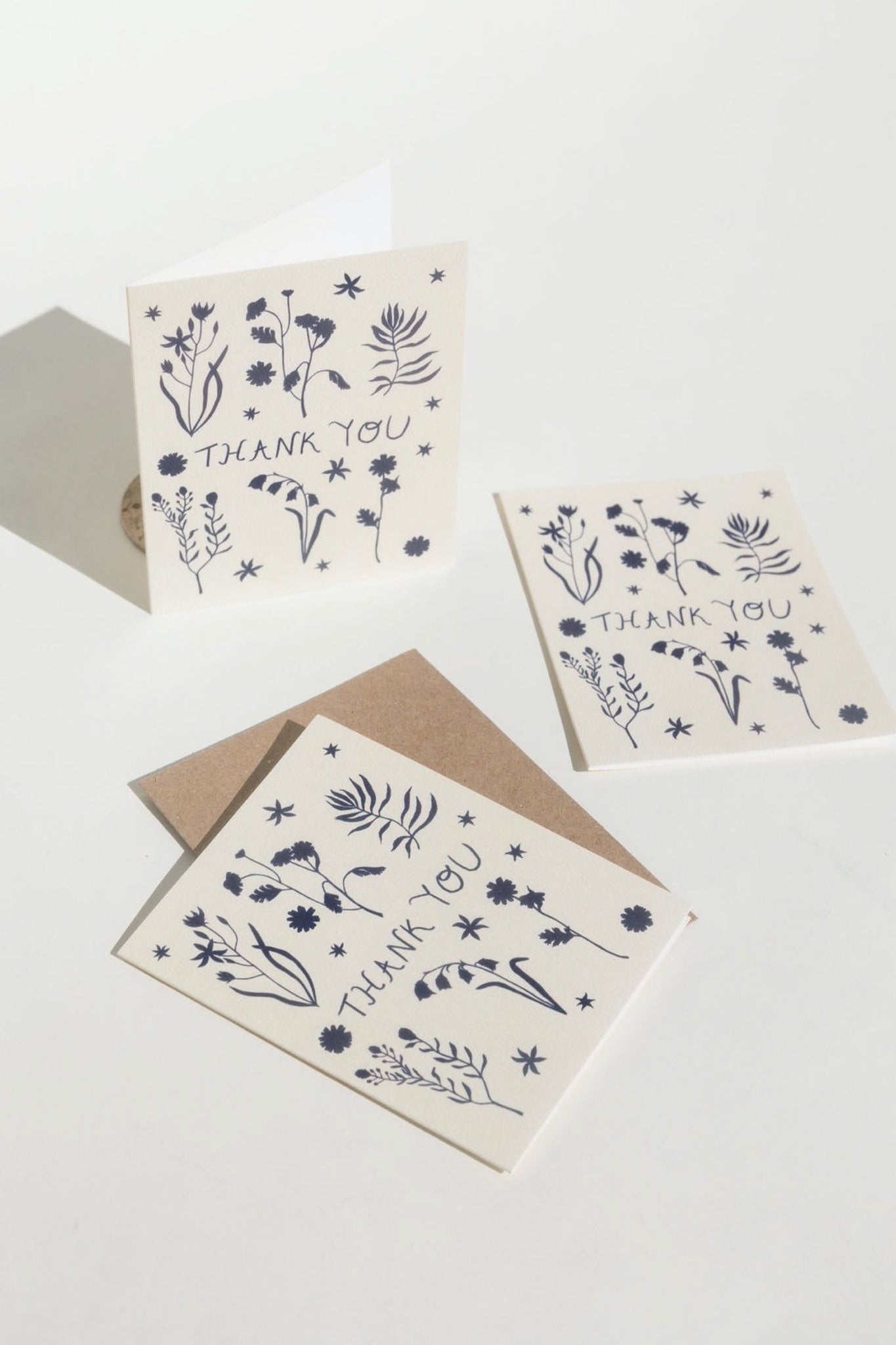 Blank inside and printed in California on FSC certified card stock. Packaged with a post consumer waste kraft envelope in clear cello sleeve.