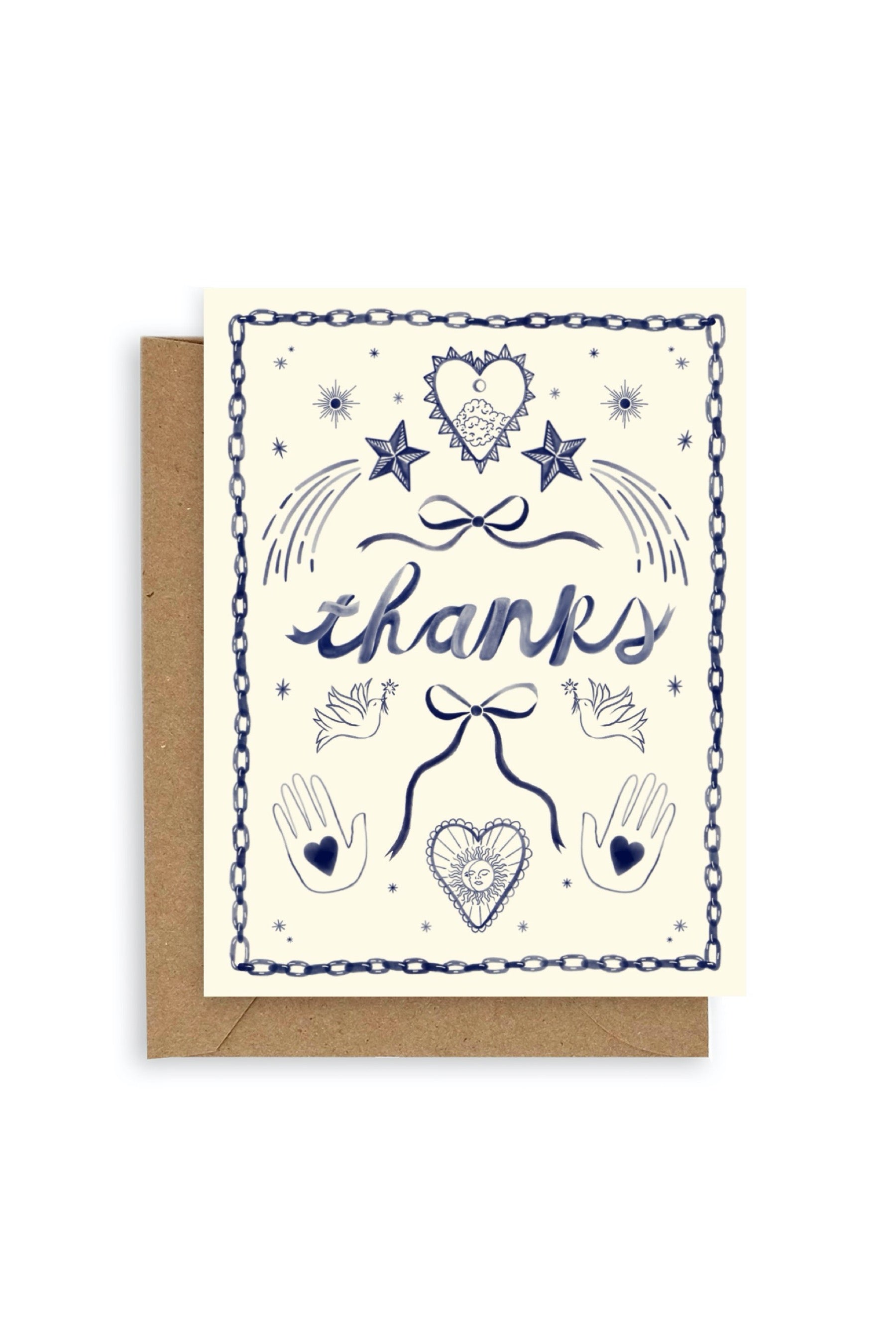 Blank inside and printed in California on FSC certified card stock. Packaged with a post consumer waste kraft envelope in clear cello sleeve.