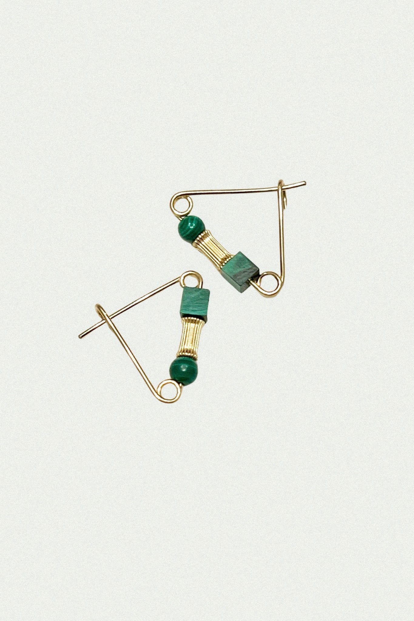 A little hoop featuring Malachite and a pillar design inspired by Greek columns.