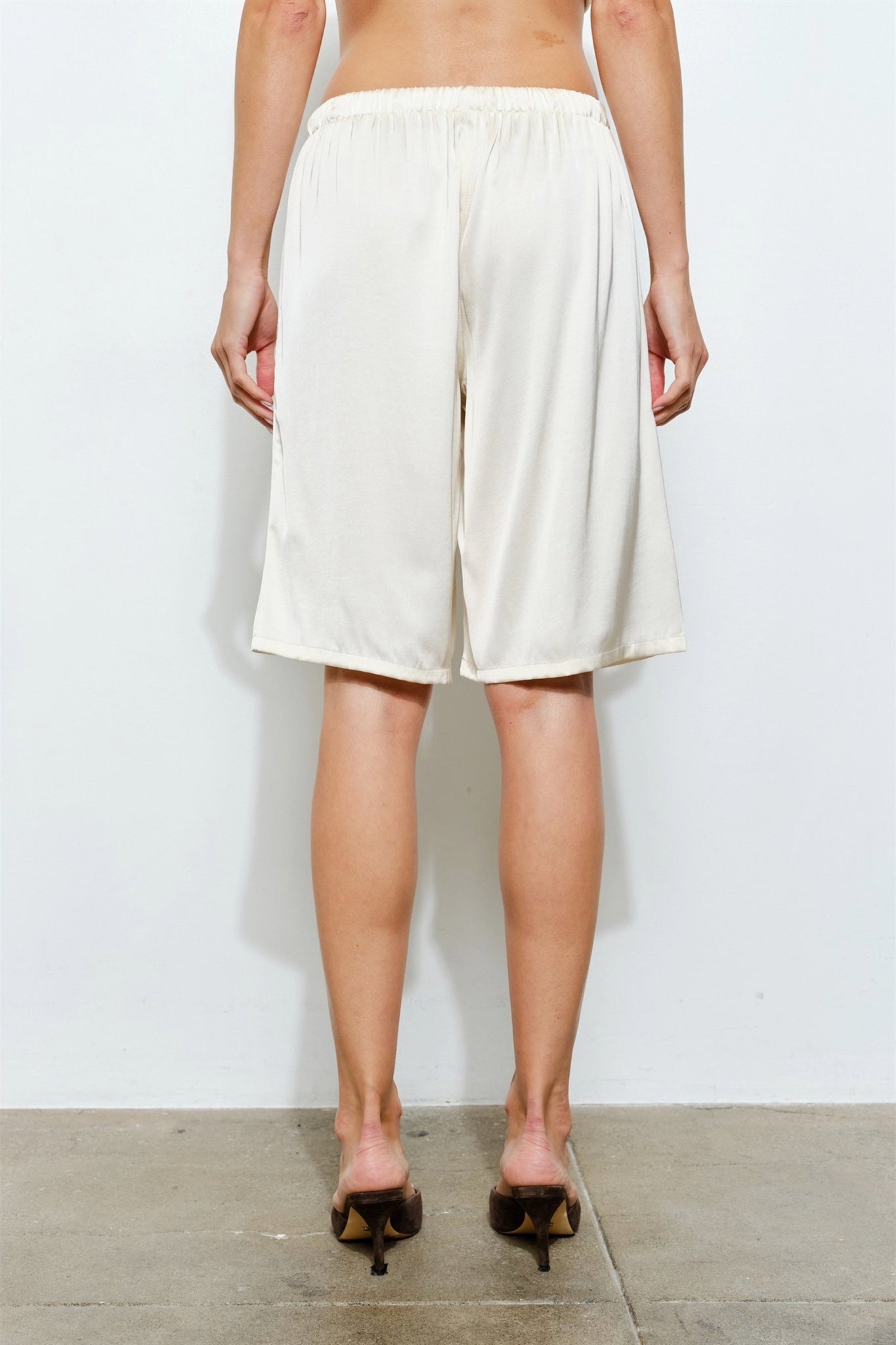 The Lily shorts offer sophisticated loungewear in luxe satin. This longline style features a comfortable drawstring waistband, practical side seam pockets, and a relaxed cut perfect for everyday wear.