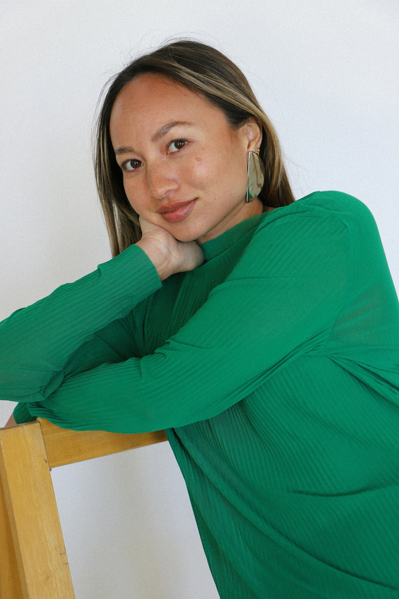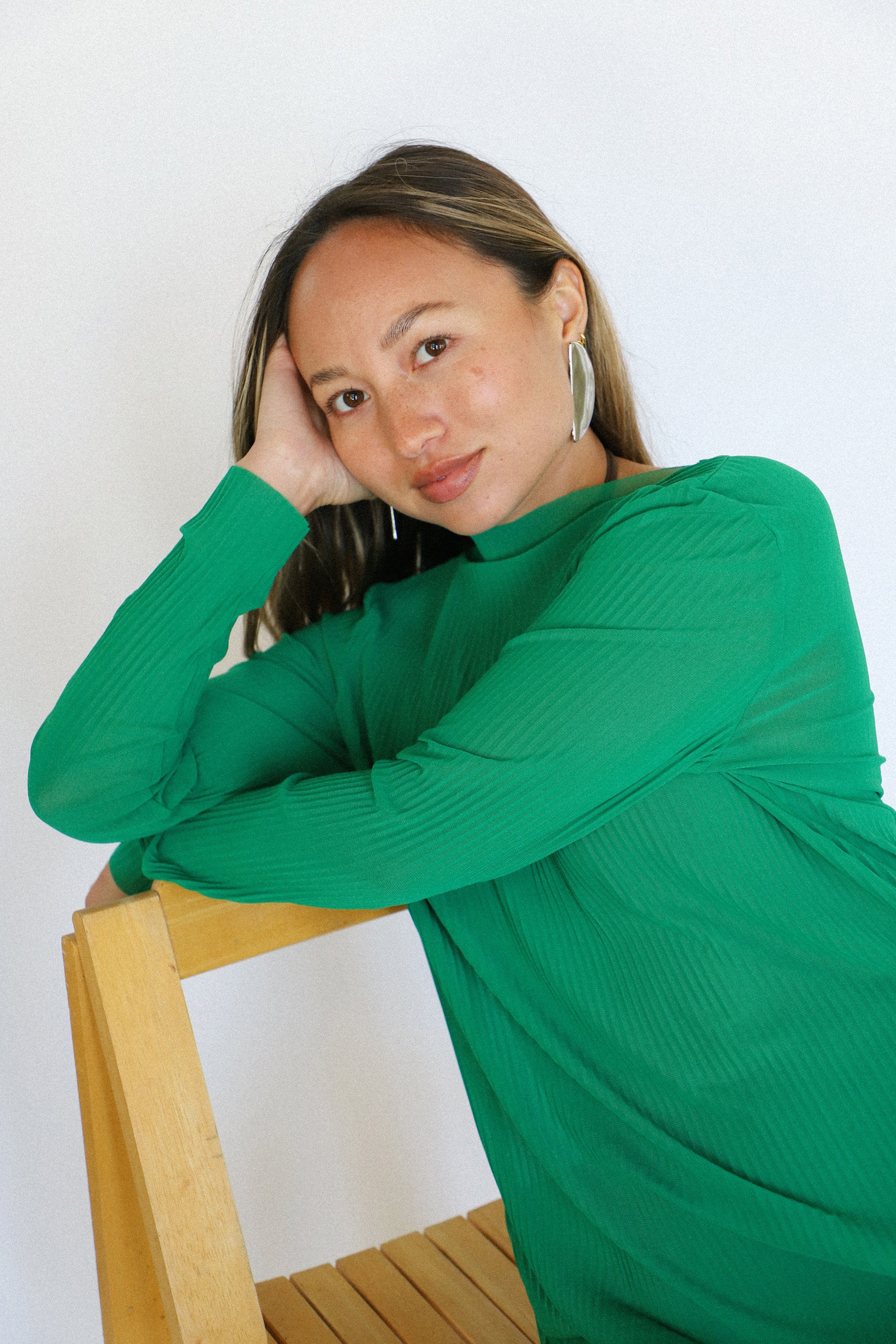Kelly Green Pleated Mesh Dress