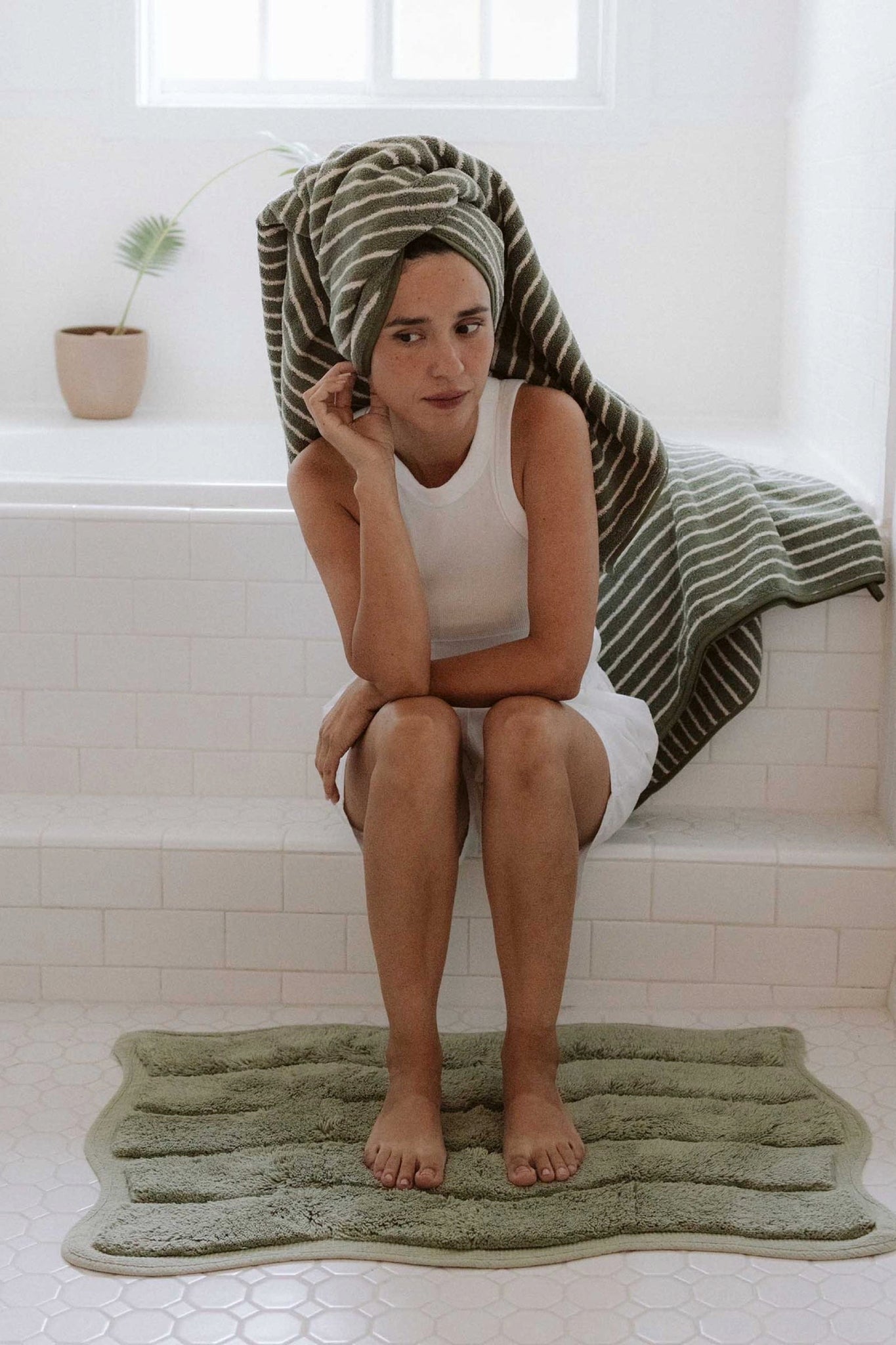 The Carmen Bath Mat features a soft wave pattern with tonal stripes created using alternating shag heights and weaving techniques. This easy piece is offered in three beautiful hues to bring color and texture into any space.