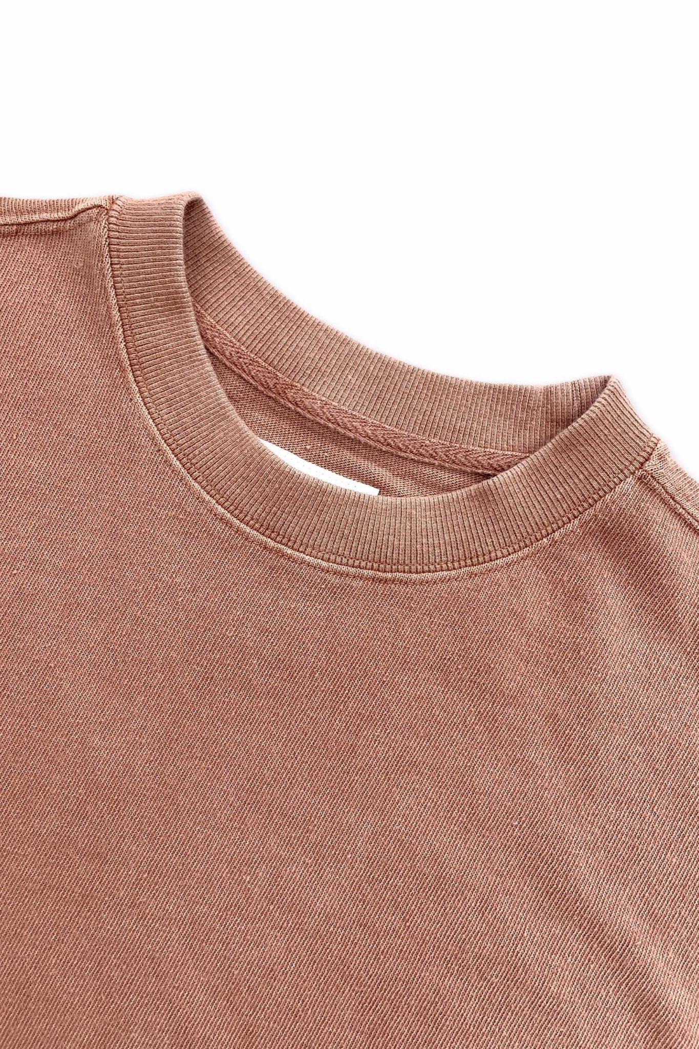This gorgeous urban muscle tee is garment dyed and pre-washed for a rich textured look with an ultra soft feel and a shorter length to pair perfectly with high waisted bottoms.