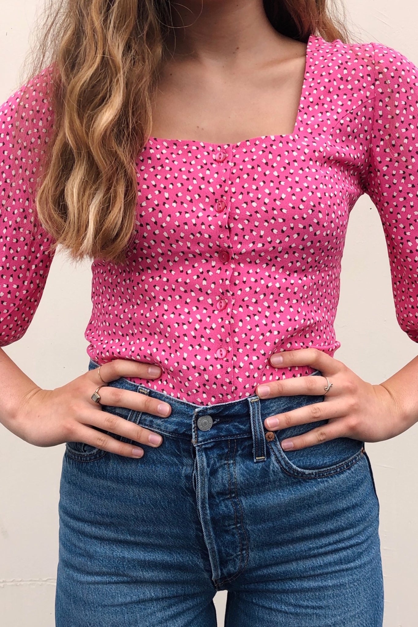 Pink Mini Tulips Roxanne Blouse